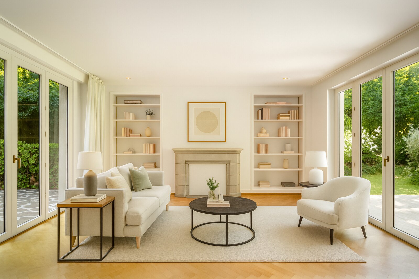 Andere: alarm, garage, parkeerplaats in de openlucht, wijnkelders, kelders, wasruimte. De foto's van de inrichting zijn gegenereerd door AI Sotheby's Realty. Kosten: 580 EUR/maand voor de tuin. EPC: F