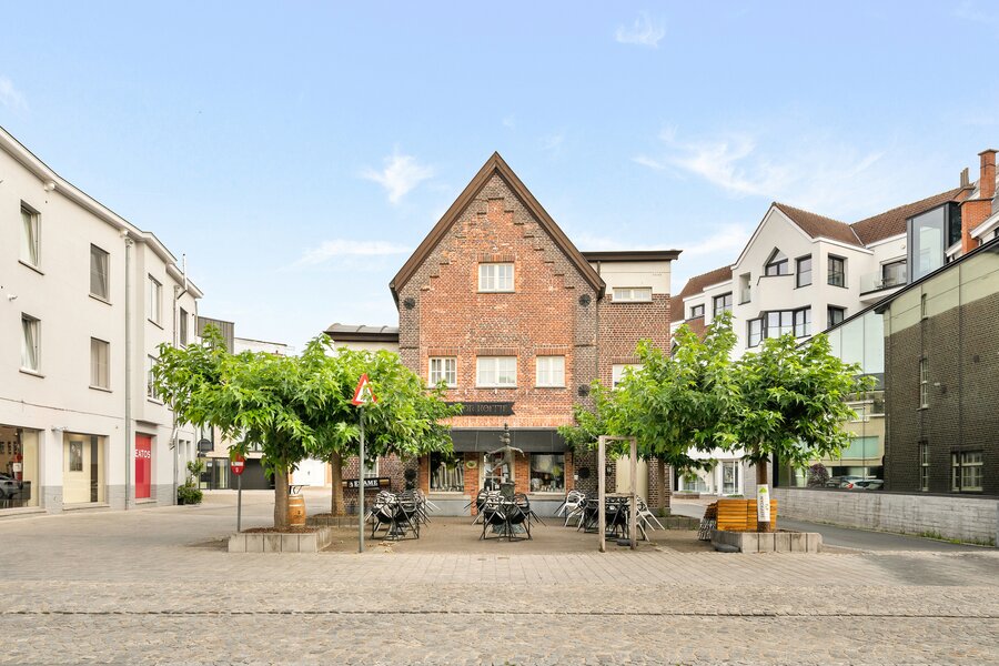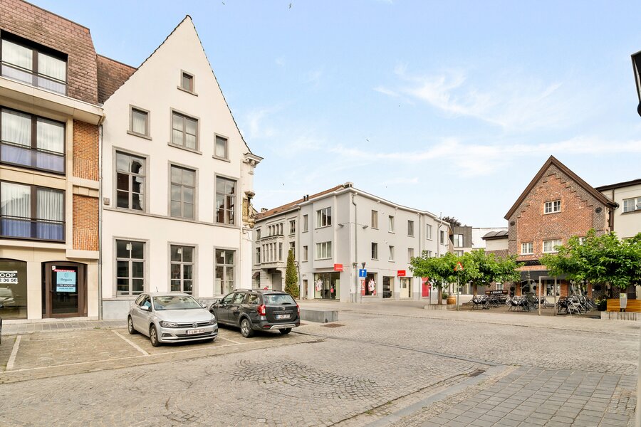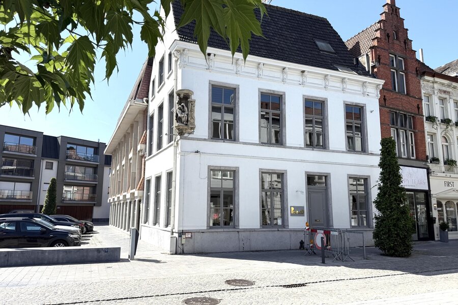 TOPgelegen, pal in het centrum: prachtige charmante herenwoning bestaande uit een handelsgelijkvloers (winkel/kantoor met visbiliteit) met op het 1ste verdiep een extra woonst, en op de 2de verdieping een verhuurd dakappartement. Handige kelder, en extra parking ondergronds.