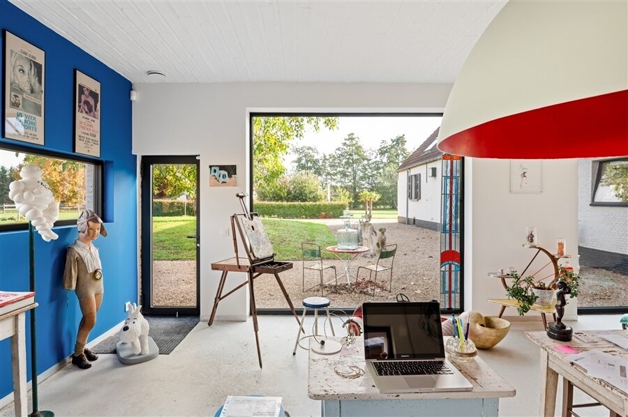 Wat vandaag als schuur wordt omschreven, is in werkelijkheid een indrukwekkende multifunctionele ruimte met eigen keuken. Perfect als atelier, tentoonstellingsruimte, privéverzameling of inspirerende plek voor workshops en coachings.