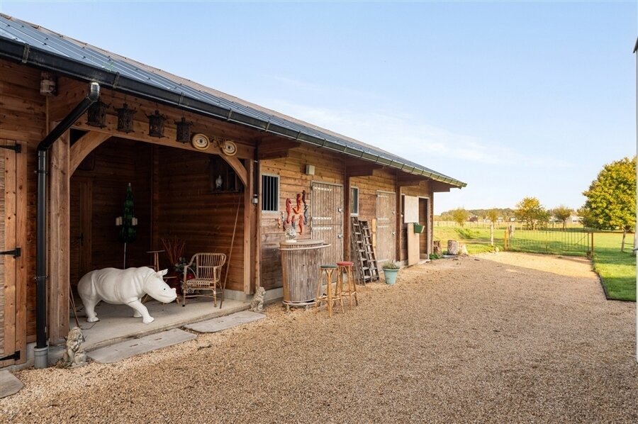 Verder beschikt het domein over een recent gebouwd, hoogwaardig stallencomplex met piste.