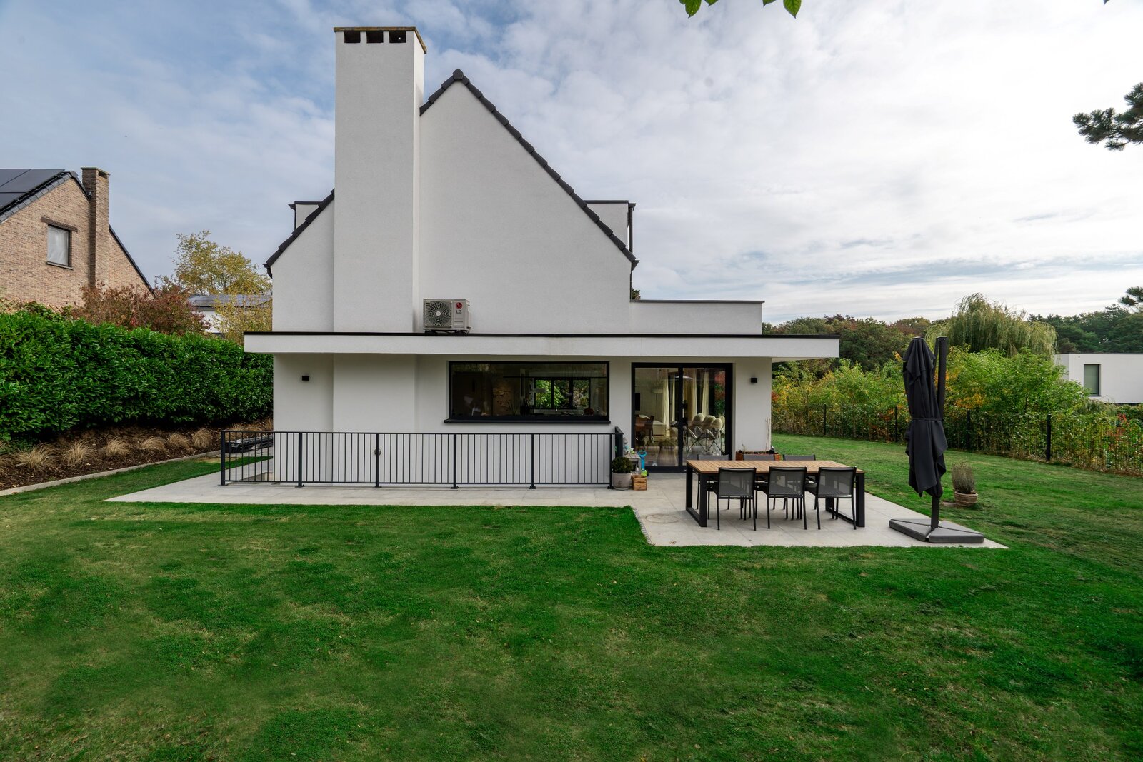 Diversen: airconditioning, dubbele flux ventilatiesysteem, alarmsysteem, waterverzachter, videobewaking, buitenverlichting en panic room.