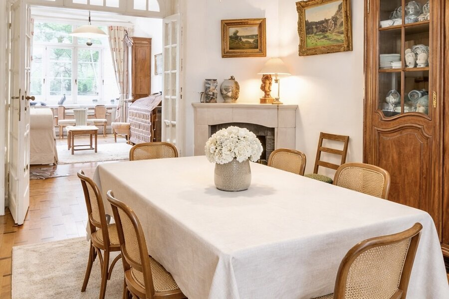Dit grote huis, met zijn klassieke architectuur, combineert elegantie, charme en verfijning, en onderscheidt zich door zijn lichte kamers dankzij een glazen dak, zijn hoogwaardige afwerking en zijn warme sfeer.