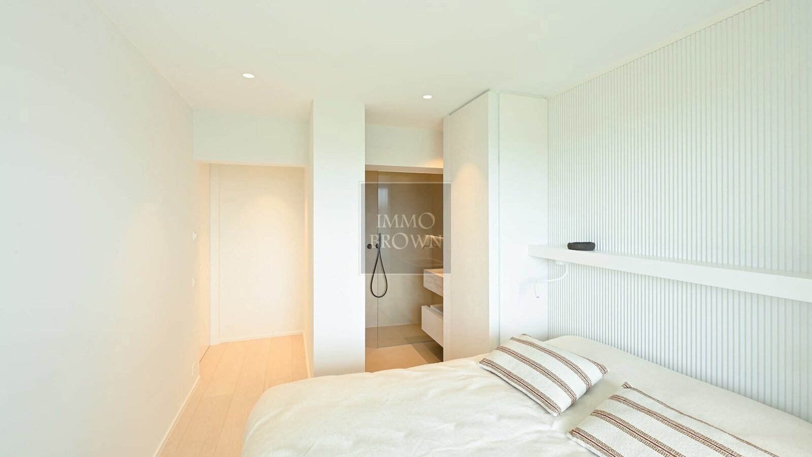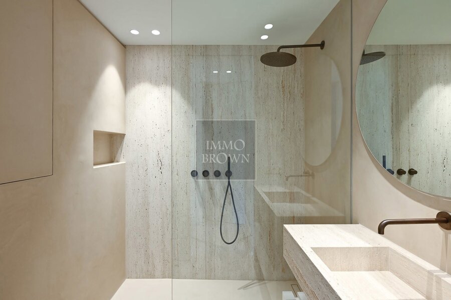 Via de nachthal bereikt u drie comfortabele slaapkamers, elk voorzien van ingemaakte kasten en een eigen badkamer, wat garant staat voor maximale privacy en comfort. De hoofdslaapkamer beschikt over een ensuite badkamer met dubbele wastafel, ligbad en toilet, terwijl de tweede slaapkamer is uitgerust met een eigen douchekamer met inloopdouche en lavabo. Ook de derde slaapkamer geniet van een privatieve douchekamer met inloopdouche, lavabo en toilet.