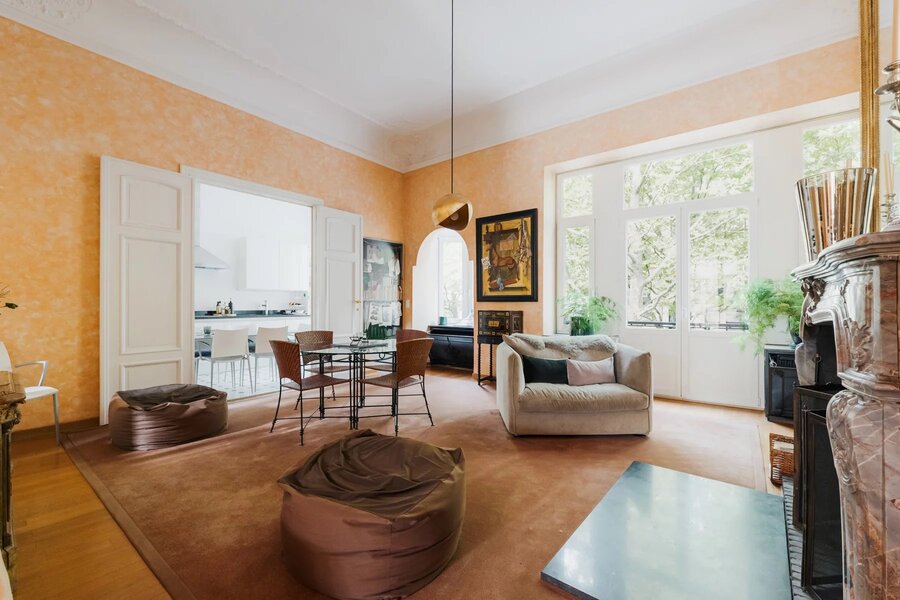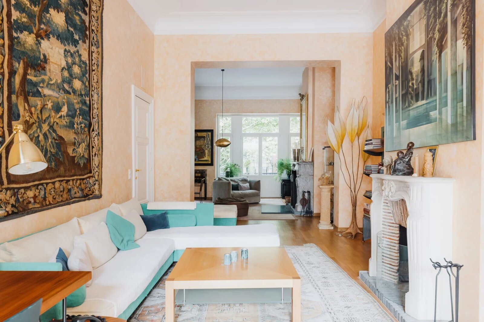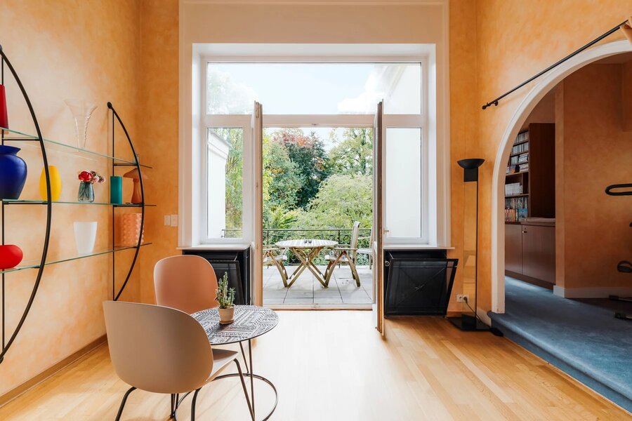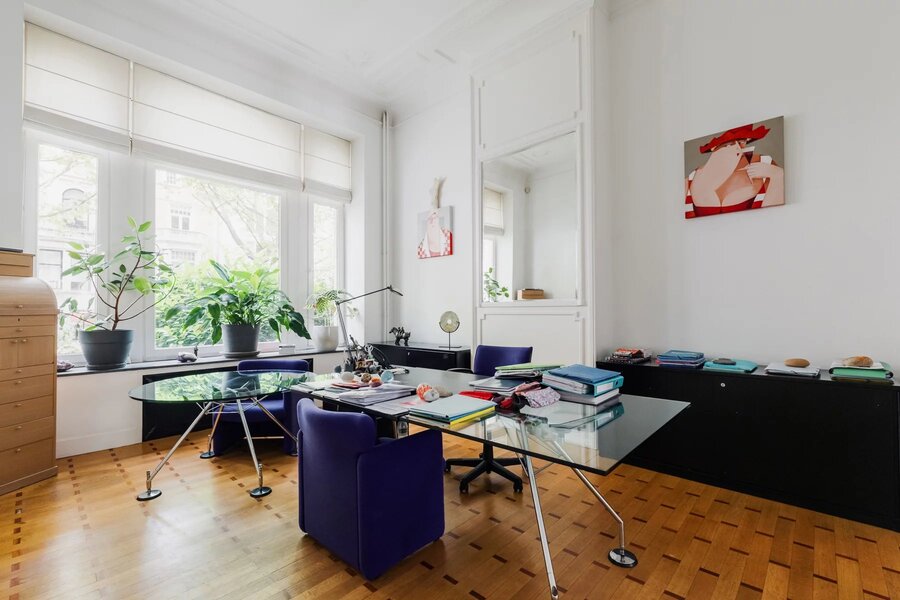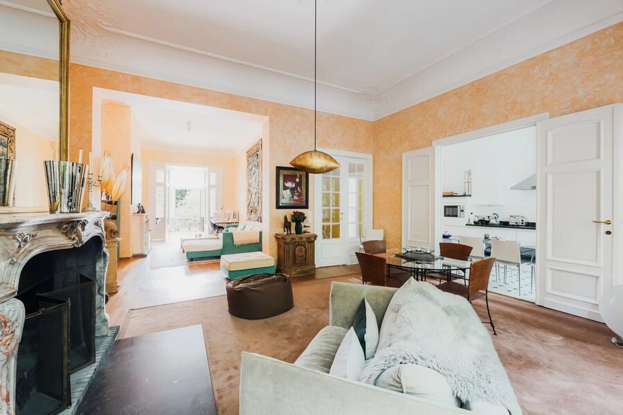 Met een elegante gevel van 9,5 meter onderscheidt dit uitzonderlijke pand met koetsdoorgang zich door zijn royale volumes, originele moulures en mooie plafondhoogte.