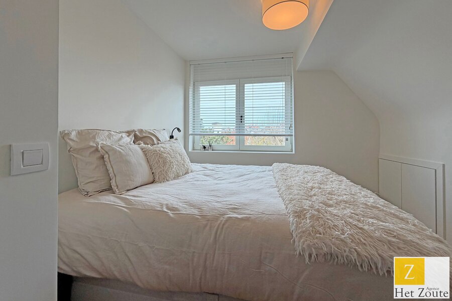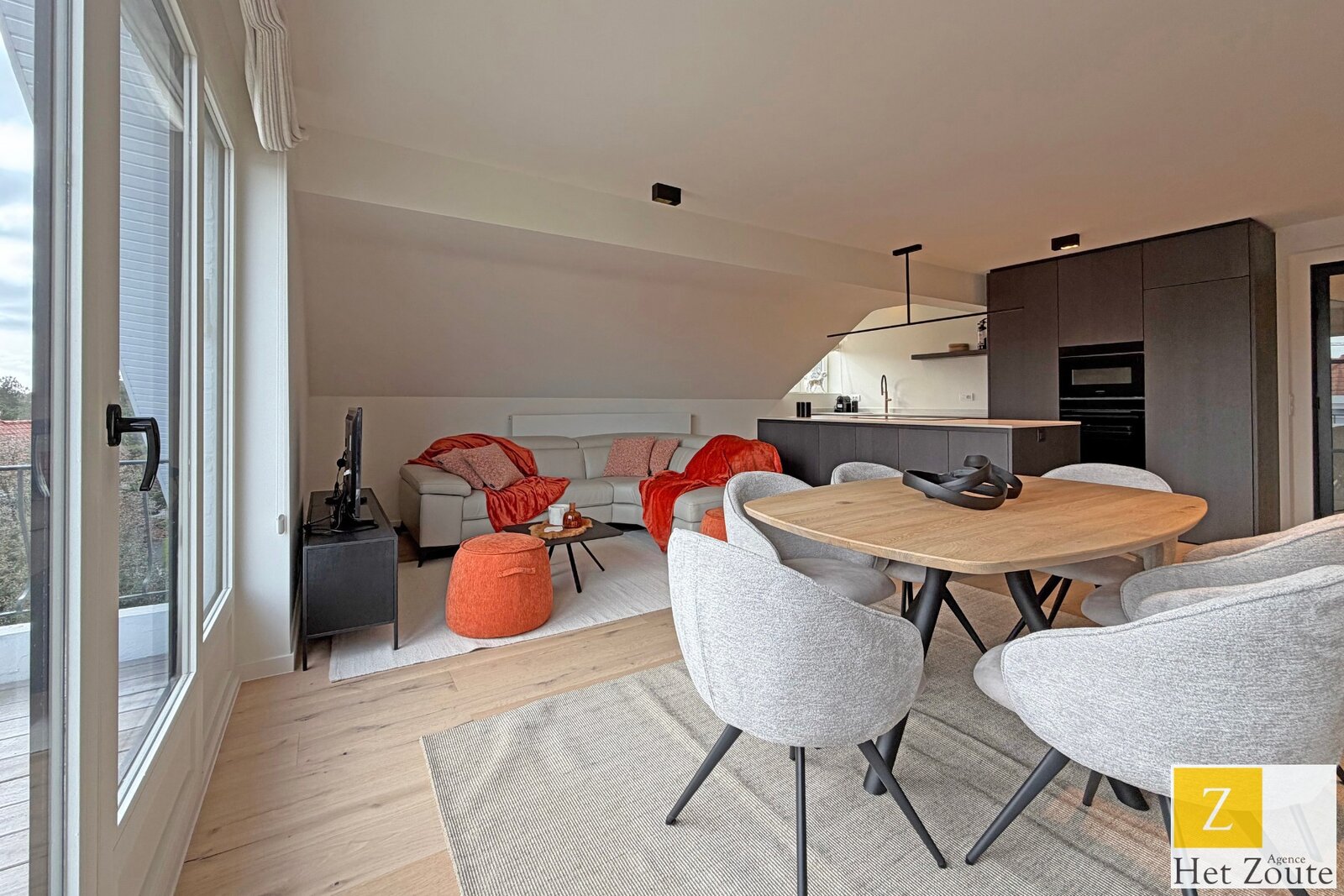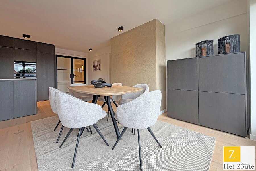 In het hart van het Zoute, op een uitzonderlijke locatie vlak bij de Minigolf, bevindt zich dit prachtig gerenoveerde appartement dat comfort, ruimte en elegantie moeiteloos combineert. Bij het binnenkomen wordt u verwelkomd in een ruime inkomhal met vestiaire, die meteen de toon zet voor de rest van het appartement. De lichtrijke woonkamer met gezellige zit- en eethoek sluit naadloos aan op het terras, waar u geniet van een open en rustgevend zicht.