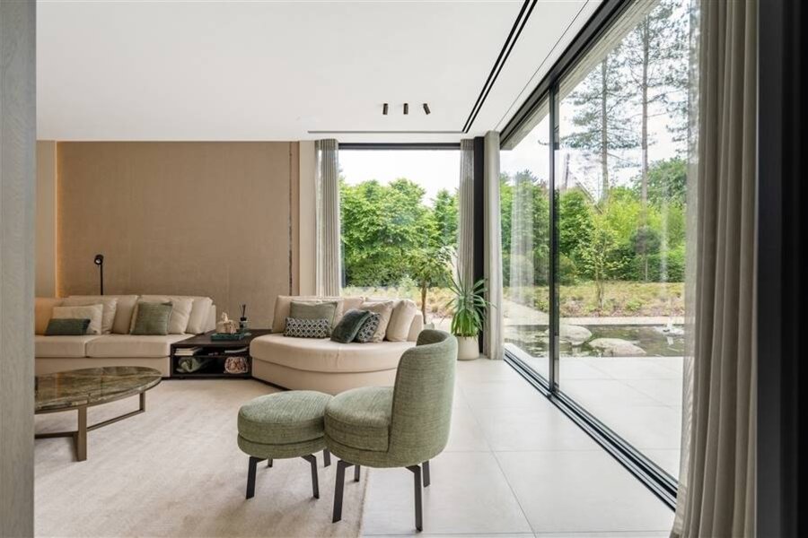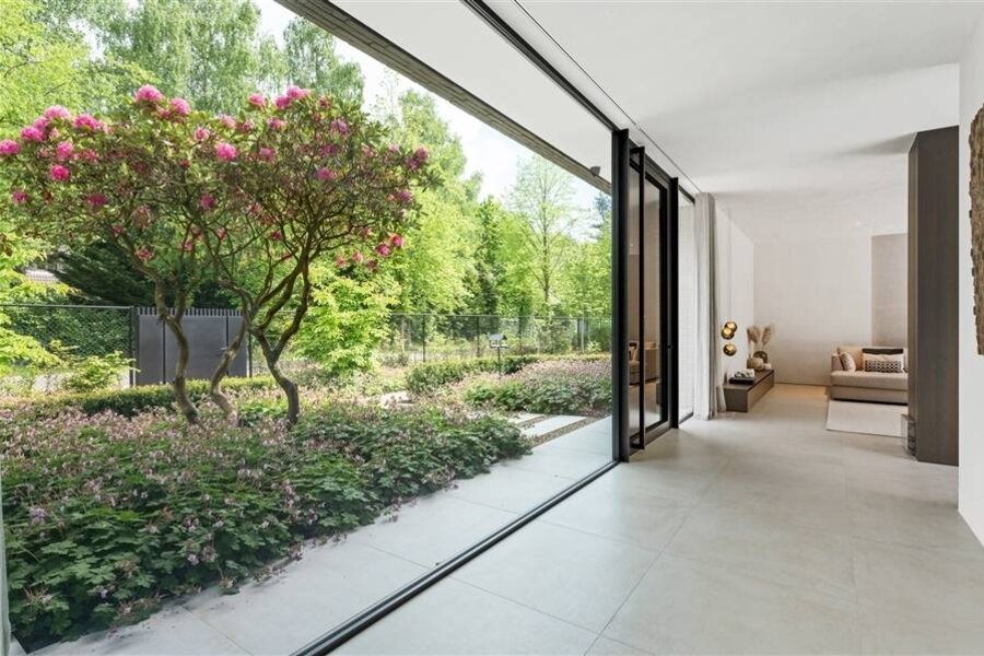 Rondom de villa werd een prachtige tuin aangelegd met een groot zwembad, overdekt terras en bijkomende terrassen. De tuin biedt rust en privacy met het hele jaar een variatie van de seizoenen.