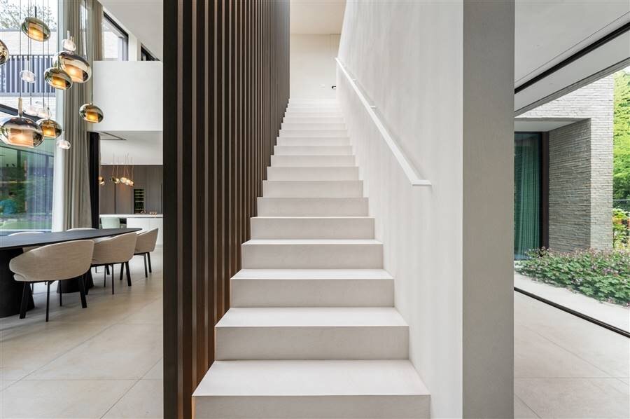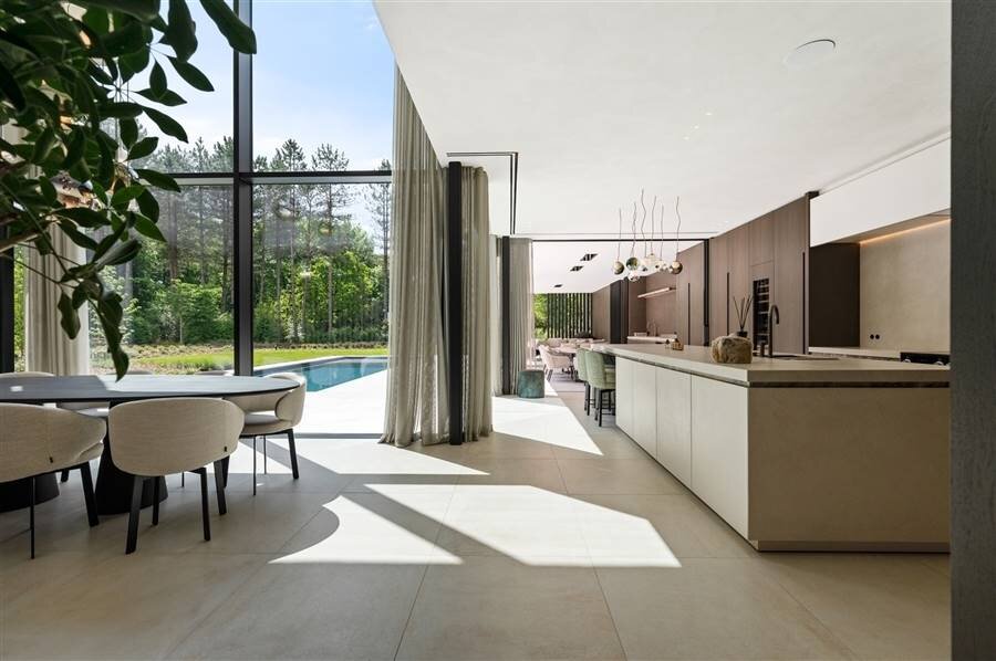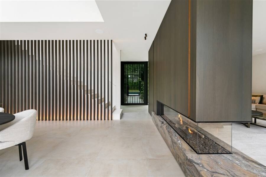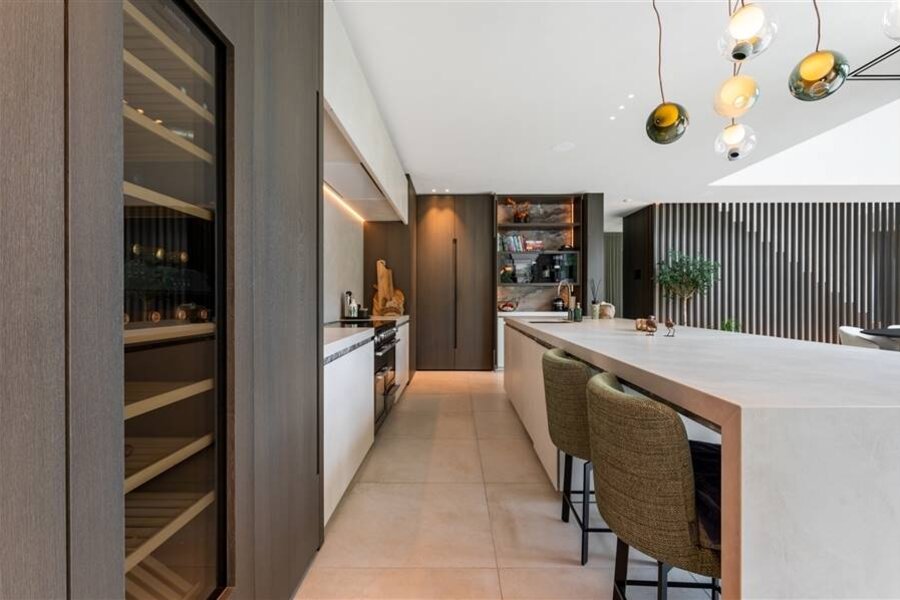 Deze zeer exclusieve villa werd gebouwd met de beste materialen en met veel oog voor detail. Er werden veel kenmerkende details in de afwerking gerealiseerd. Van ingebouwde verlichting en plafondhoge ramen tot schuiframen welke verdwijnen en maatwerk deurkrukken; alle details zijn tot in perfectie afgewerkt.