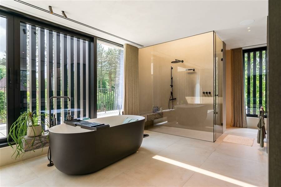 U rijdt de doodlopende straat binnen en ervaart ineens de rust en luxe van deze bijzondere locatie. De villa werd optimaal ingetekend op het perceel om volop zonlicht te kunnen ontvangen op de terrassen en toch volop privacy te genieten.