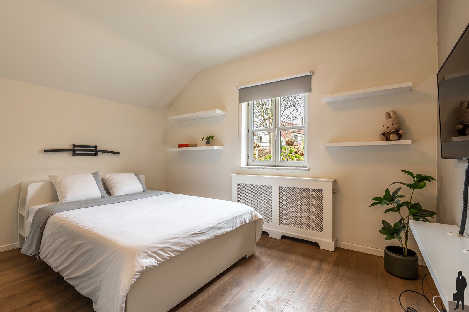 - een tweede slaapkamer op parket met ingemaakte kasten -en bureau