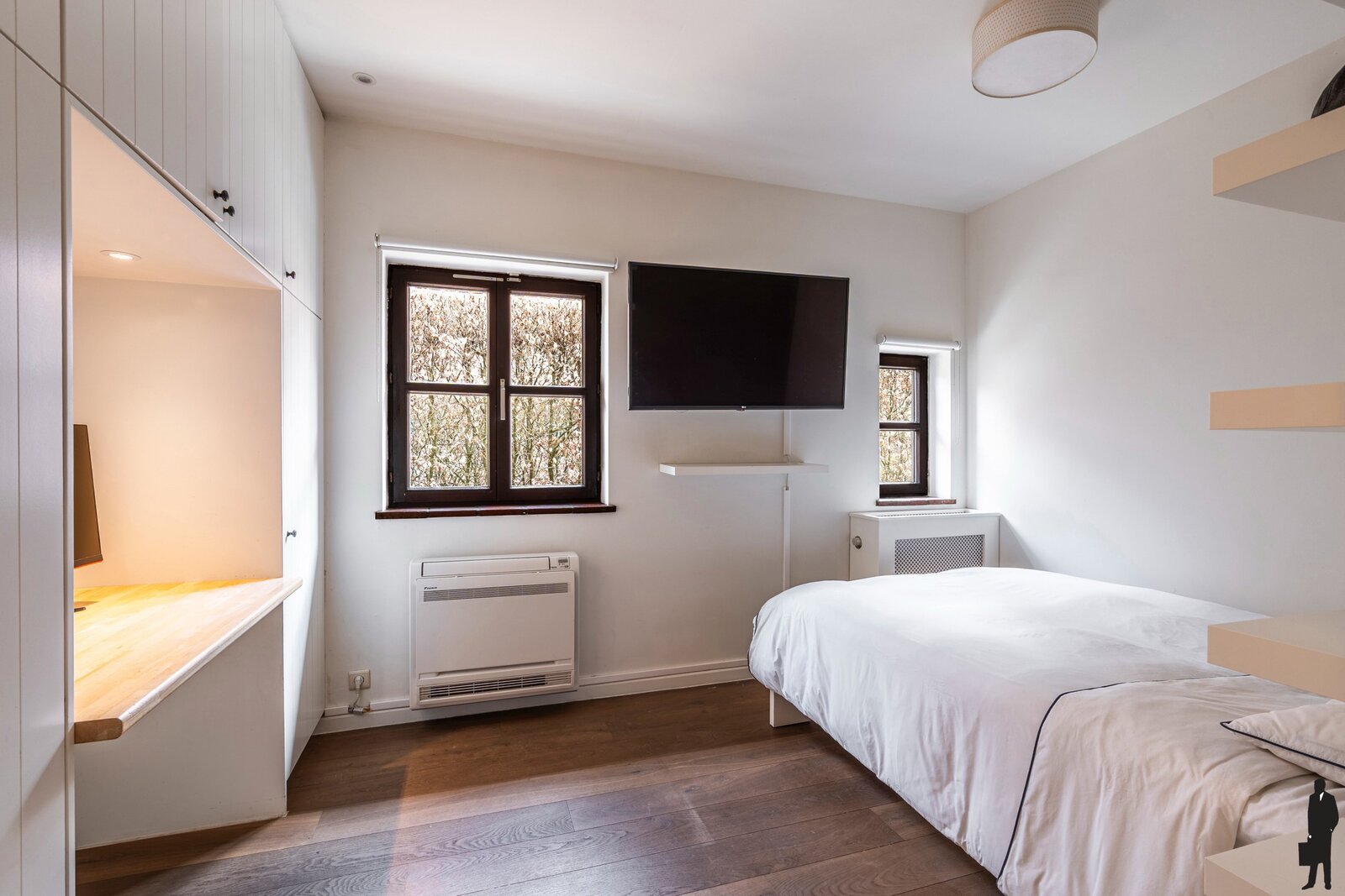 - een eerste slaapkamer op parket met ingemaakte kasten -en bureau