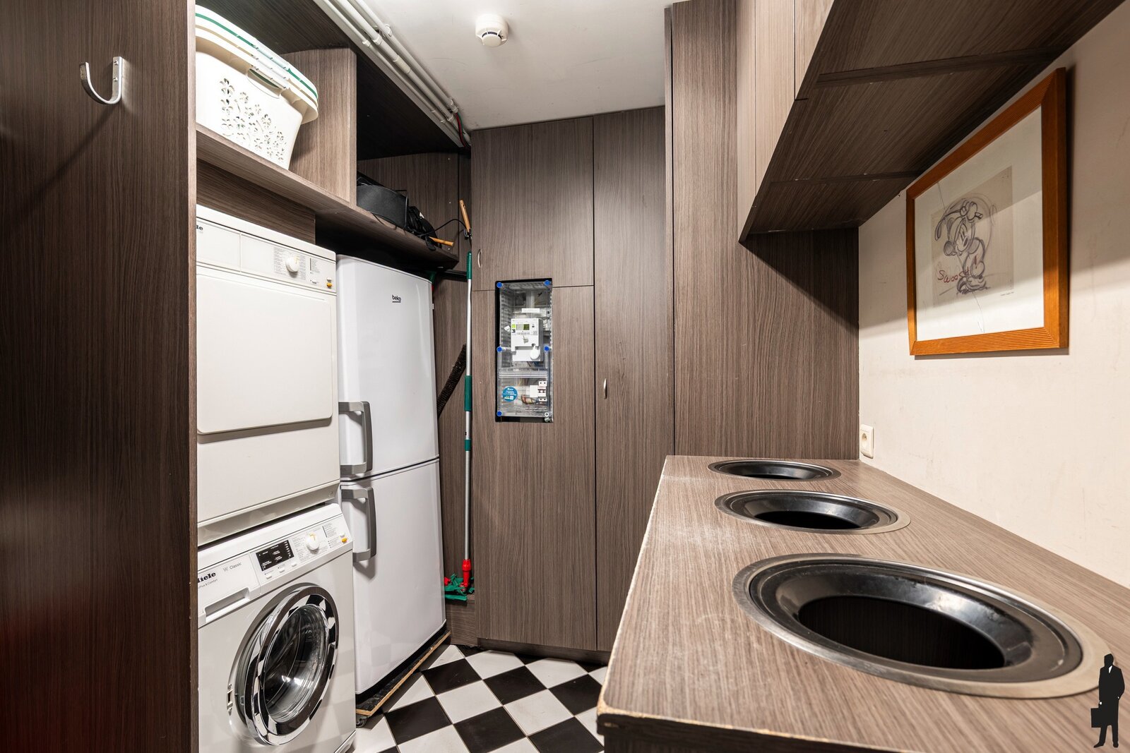 - een praktische berging/wasplaats met ingemaakte kasten en toegangsluik naar de kruipkelder
