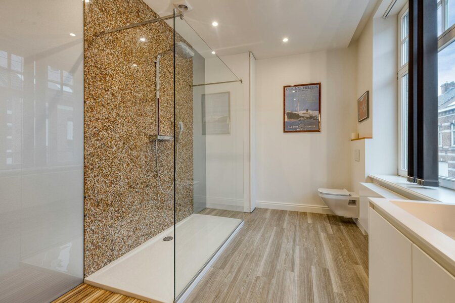 - badkamer 1 (12m²) met inloopdouche en dubbele lavabo in meubel;