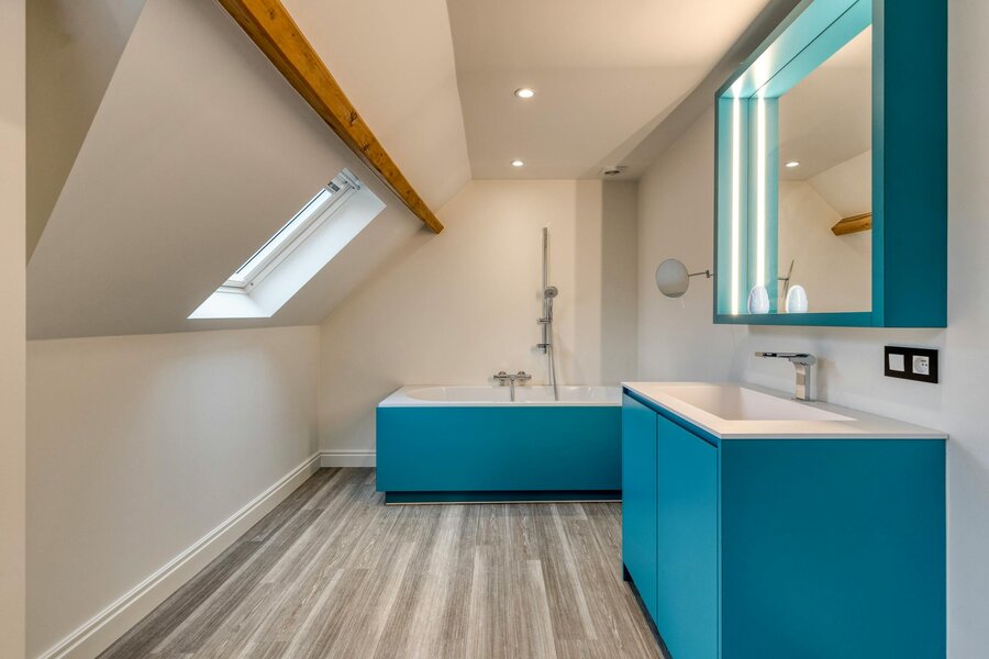- badkamer 3 (12m²) met ligbad, lavabo in meubel en toilet.