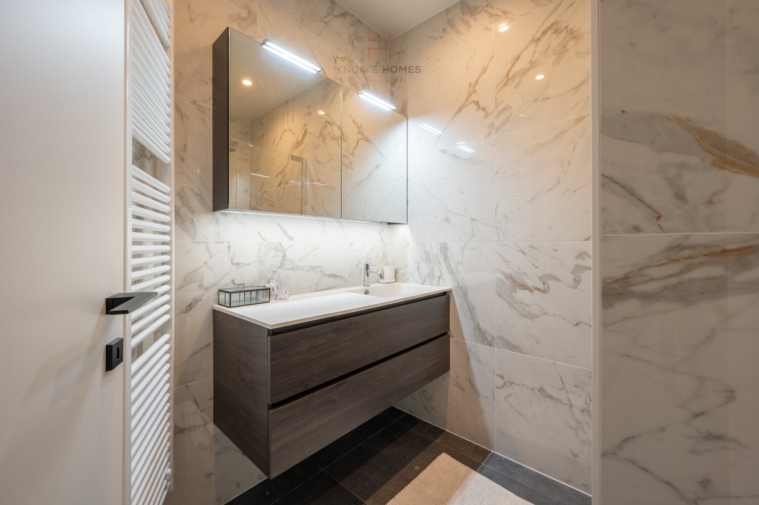 Automatische rolluiken achteraan zorgen voor extra comfort en privacy. Tot slot is er een ruime privatieve kelder inbegrepen.