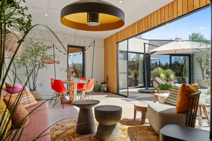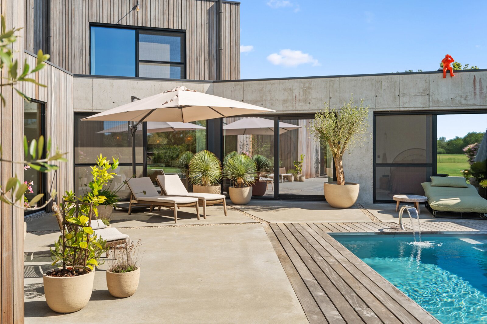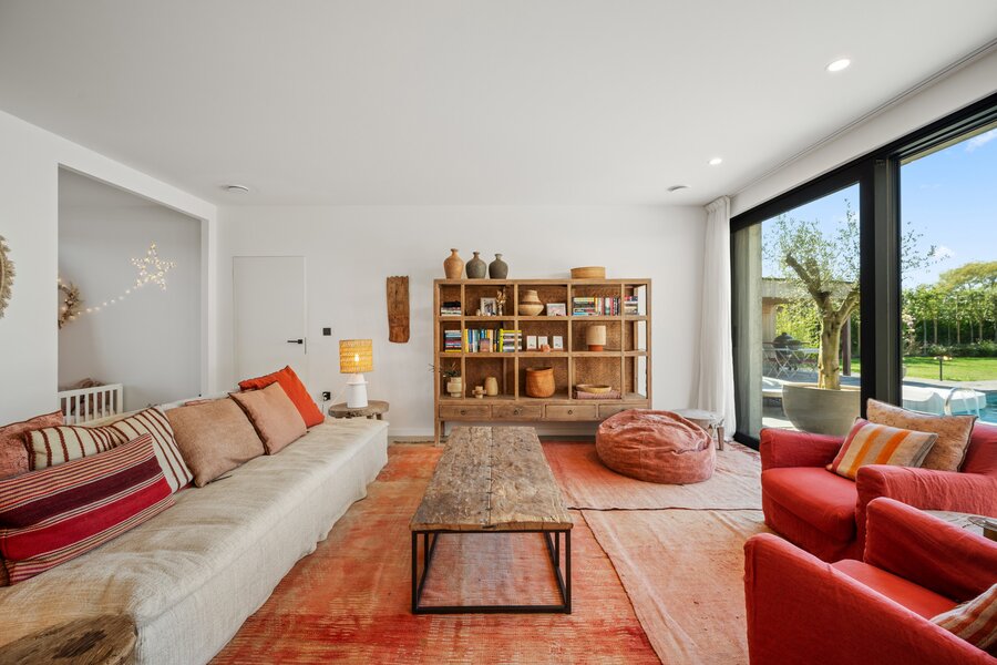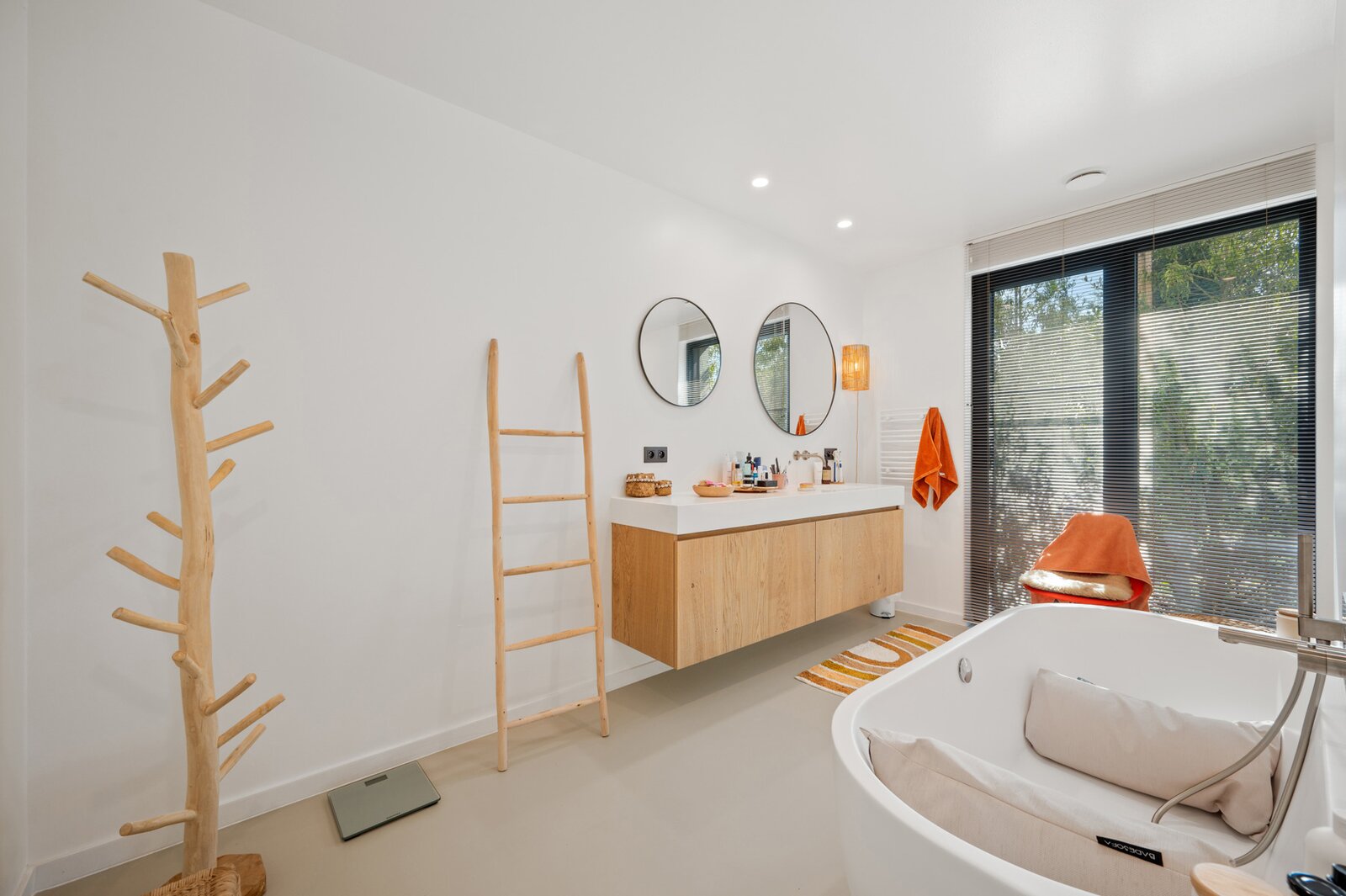 Een extra troef is de wintertuin met uitzicht op het zwembad met pergola. Dankzij de afsluitbare glaswand kan deze ruimte ook in het voor- en najaar optimaal worden benut. De aangebouwde pergola biedt extra rust en eetmogelijkheid buiten. Verder is er een polyvalente ruimte (64 m²) die momenteel is ingericht als fitness met infraroodsauna, sauna en fitnesstoestellen, maar die evengoed als studio met extra slaapkamer of bureau kan dienen, met water en elektrische voorziening al aanwezig.