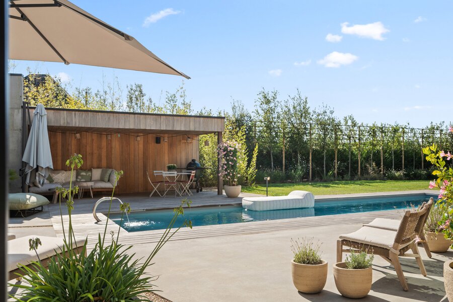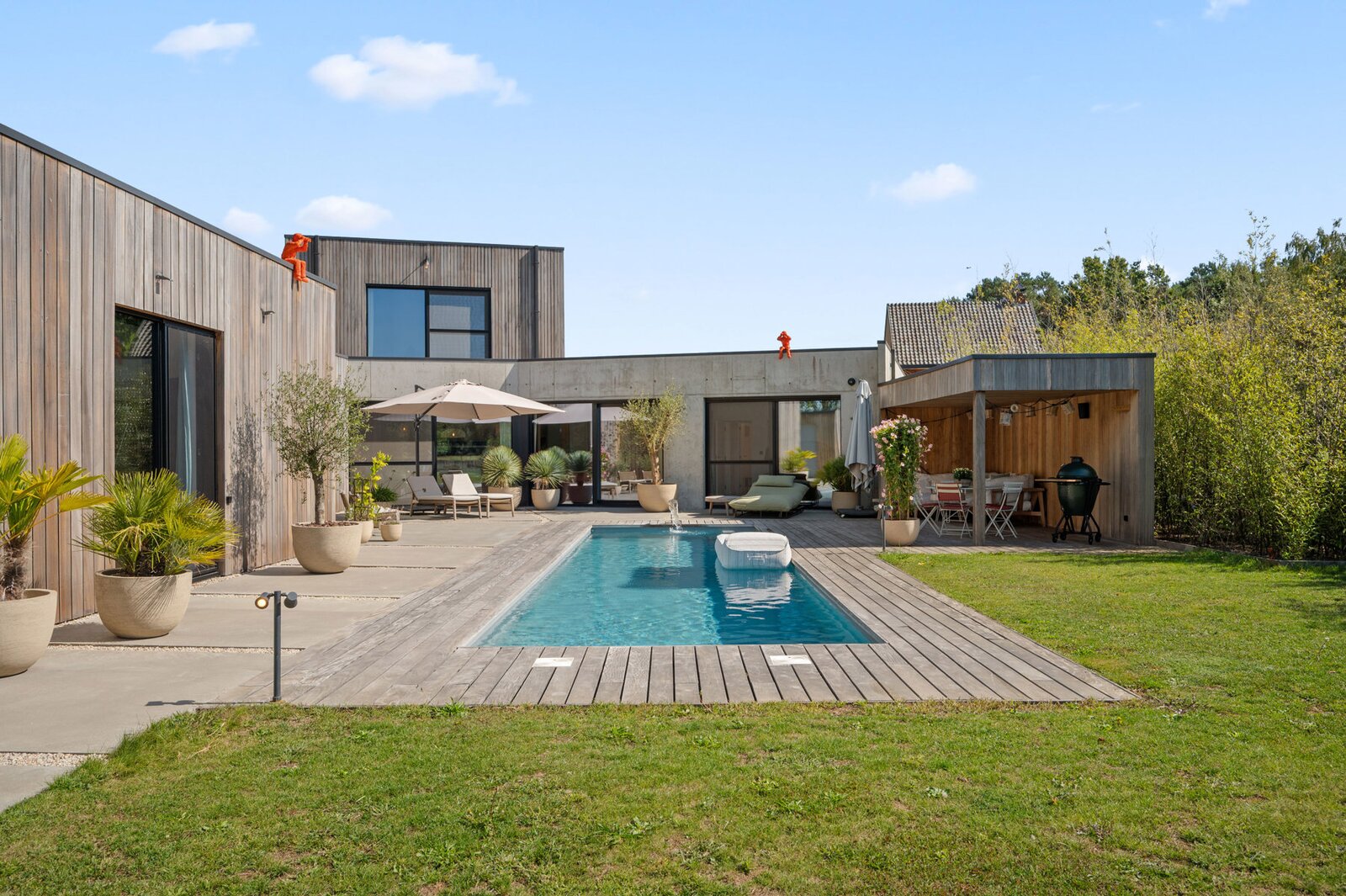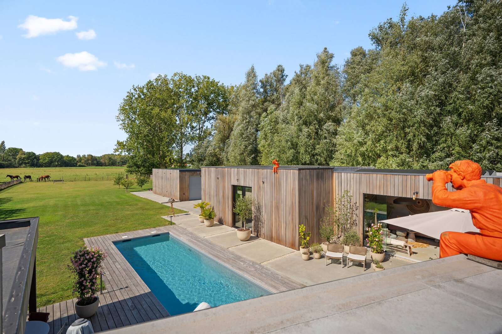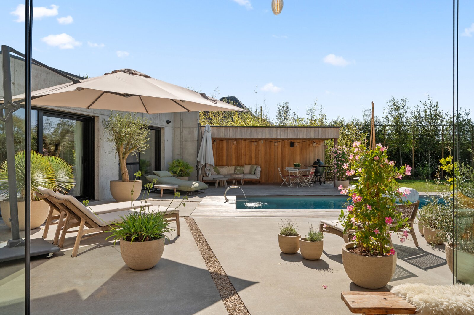 De volledig aangelegde tuin heeft een irrigatiesysteem en een zoutwaterzwembad. Helemaal achteraan is er een ruime garage van 45 m². Tot slot is de woning voorzien van camerabewaking, 26 zonnepanelen, 2 waterputten, laadpaal, airconditioning en domoticasysteem.