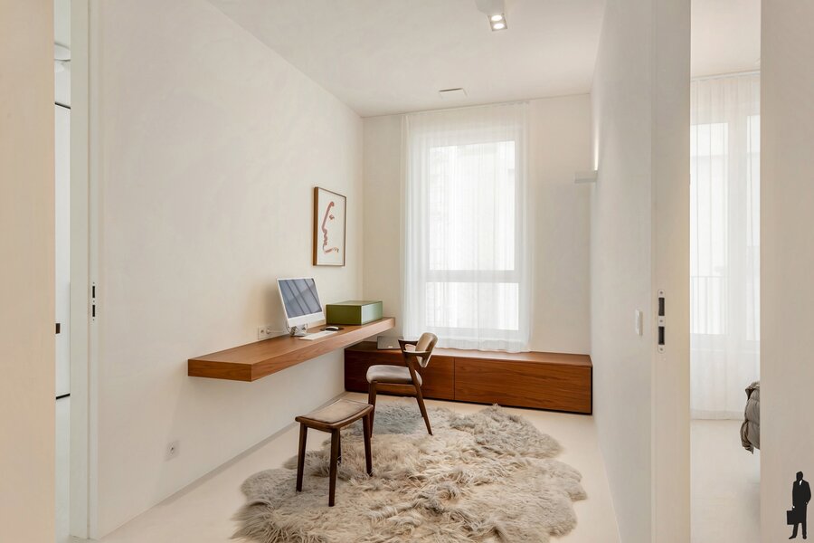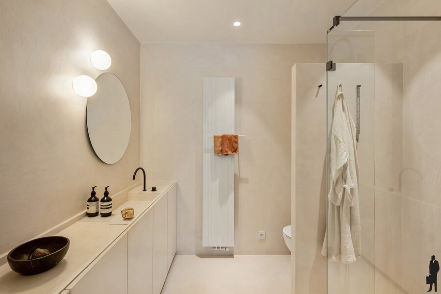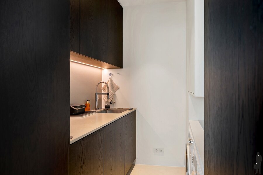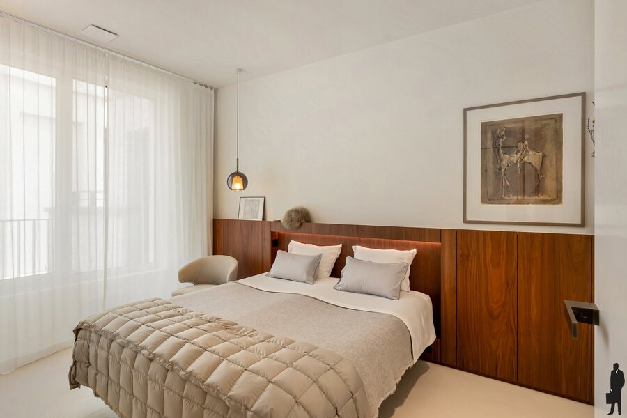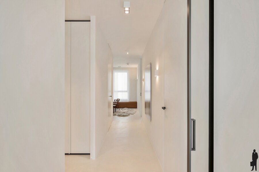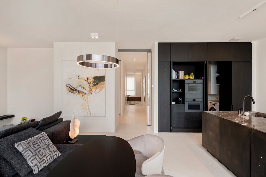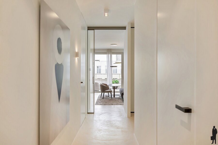 Bij het betreden van het appartement vallen meteen de ruimte en het overvloedige licht op. De hoge plafonds en hoogwaardige afwerking creëren een gevoel van luxe en comfort. Elk detail werd zorgvuldig uitgewerkt met materialen van topkwaliteit.