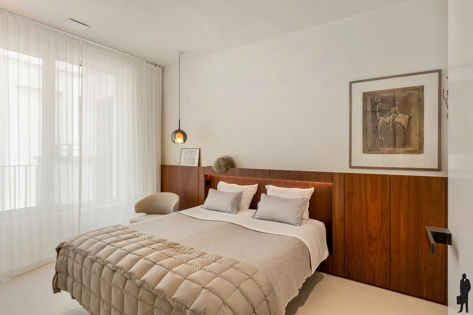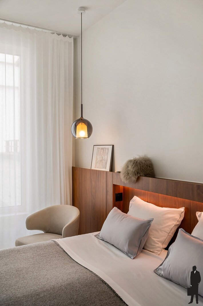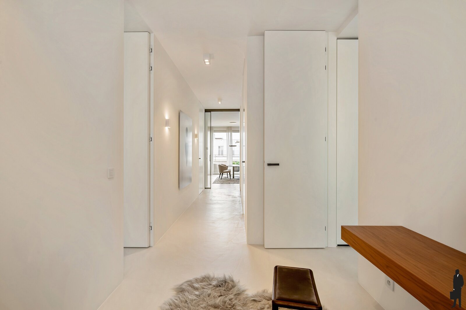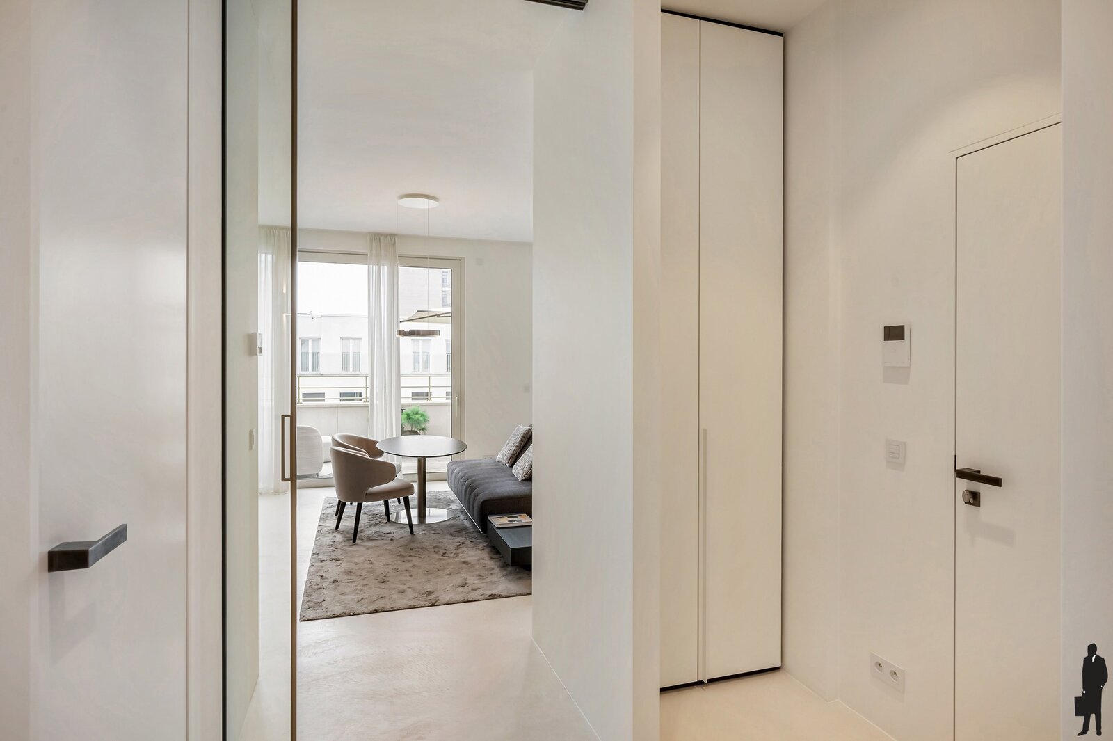 Bij het betreden van het appartement vallen meteen de ruimte en het overvloedige licht op. De hoge plafonds en hoogwaardige afwerking creëren een gevoel van luxe en comfort. Elk detail werd zorgvuldig uitgewerkt met materialen van topkwaliteit.