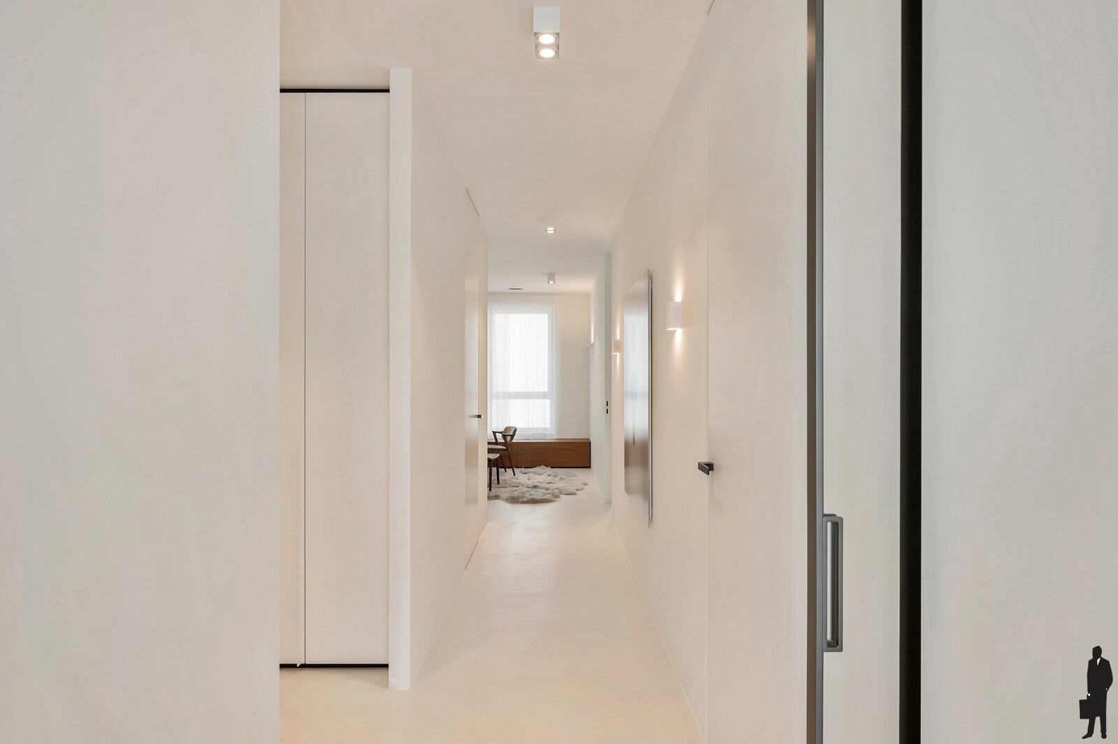 Inkomhal met ingewerkte, plafondhoge vestiairekasten