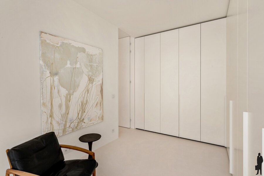 Tweede slaapkamer, momenteel ingericht als dressing met plafondhoge maatkasten