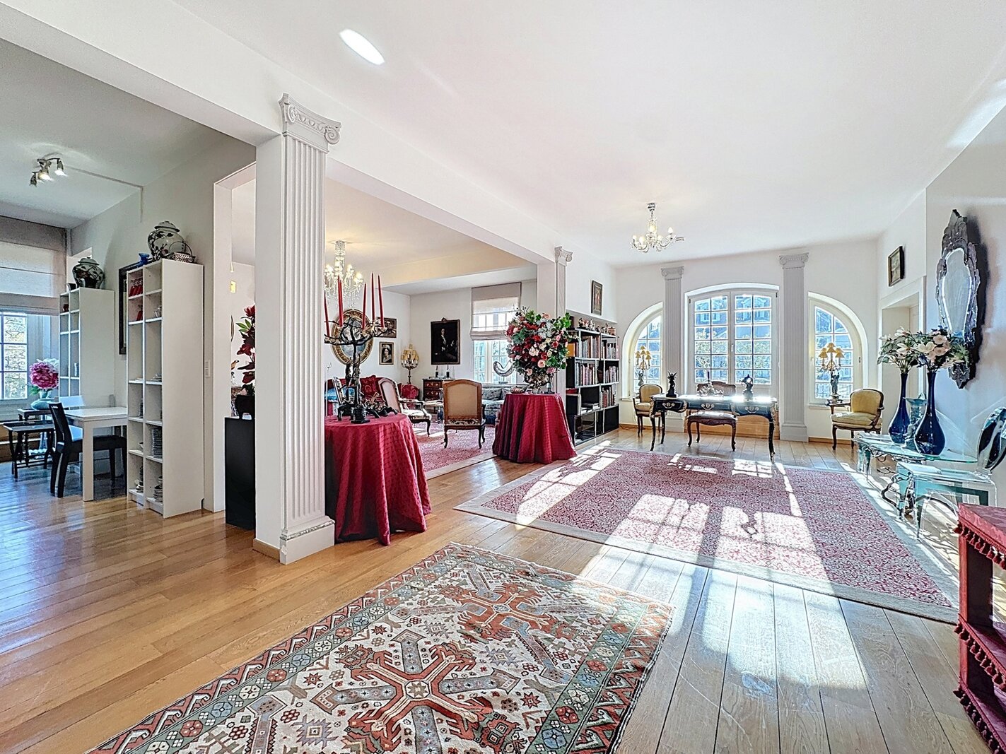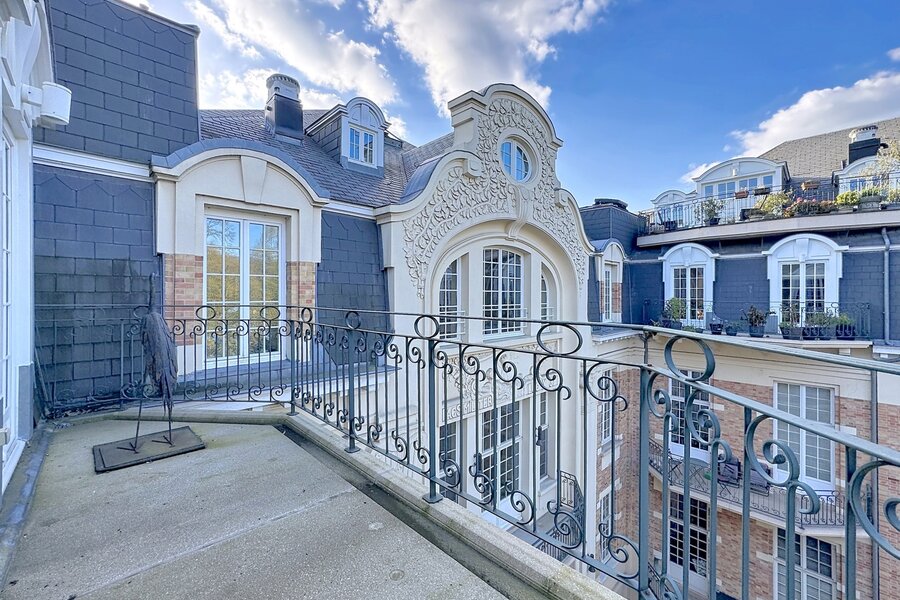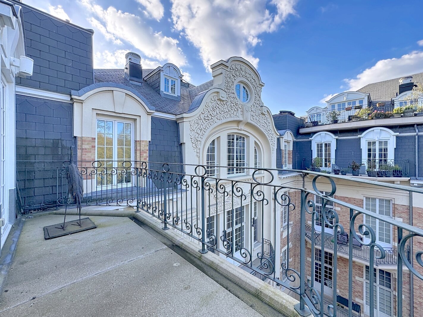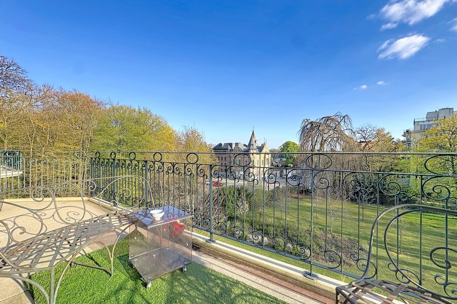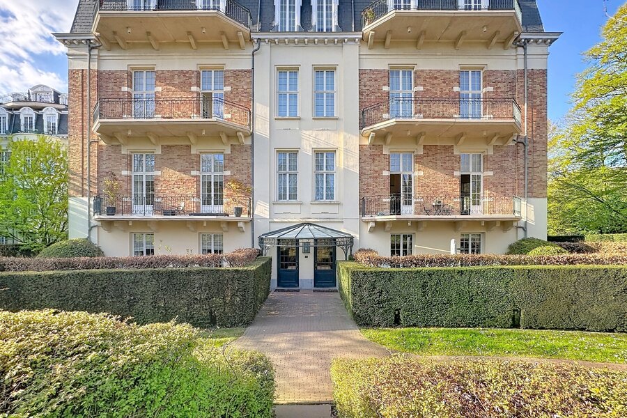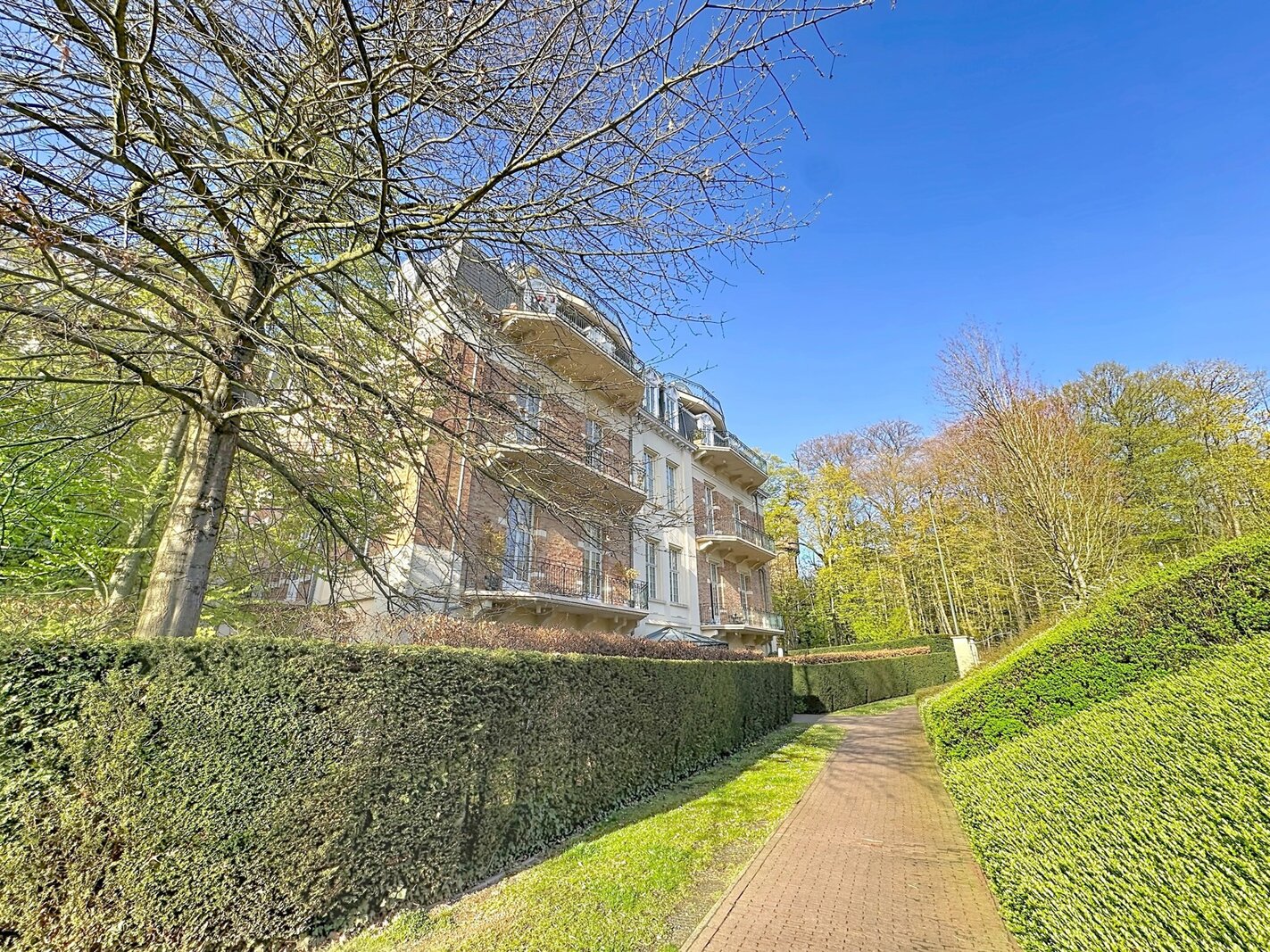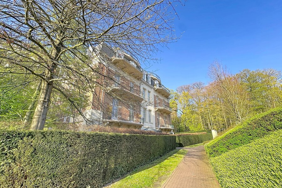 Gelegen op de 3e verdieping van de residentie Hyde Park, aan de rand van het Bois de la Cambre, spreekt dit eigendom van ±219 m² (appartement van ±184 m² en aangrenzende studio van ±35 m²) aan door zijn royale volumes en opmerkelijke lichtinval, in een groene omgeving.