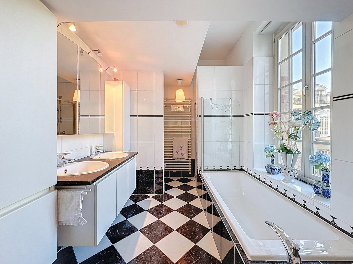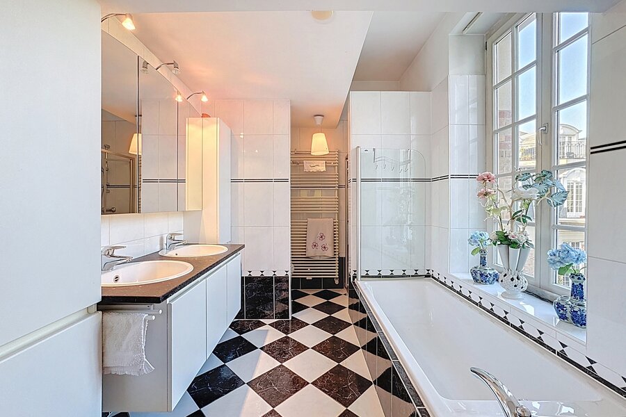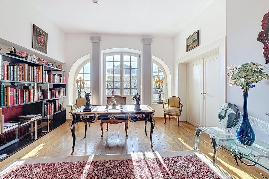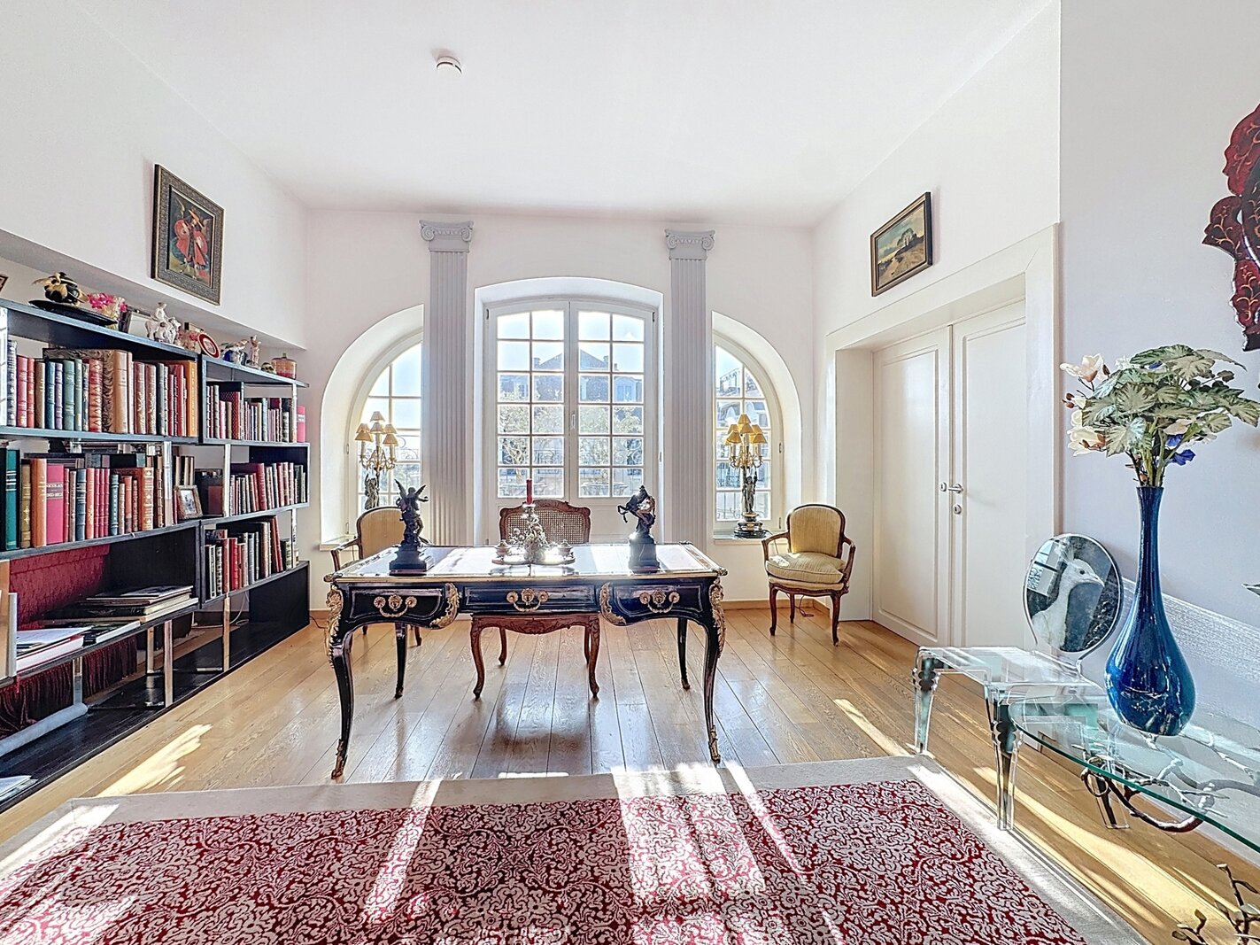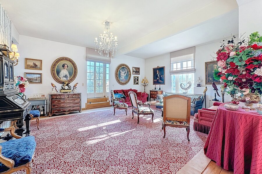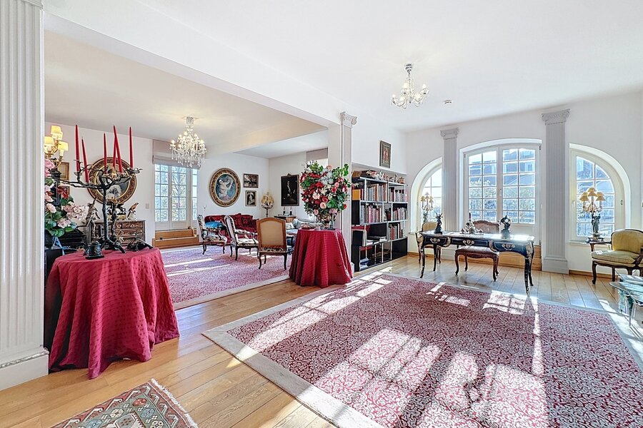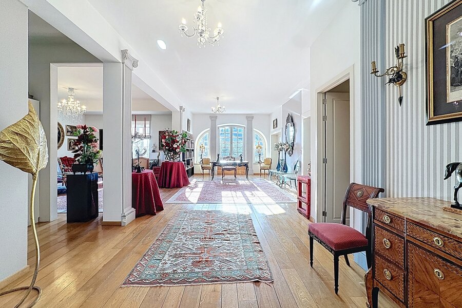 Gelegen op de 3e verdieping van de residentie Hyde Park, aan de rand van het Bois de la Cambre, spreekt dit eigendom van ±219 m² (appartement van ±184 m² en aangrenzende studio van ±35 m²) aan door zijn royale volumes en opmerkelijke lichtinval, in een groene omgeving.