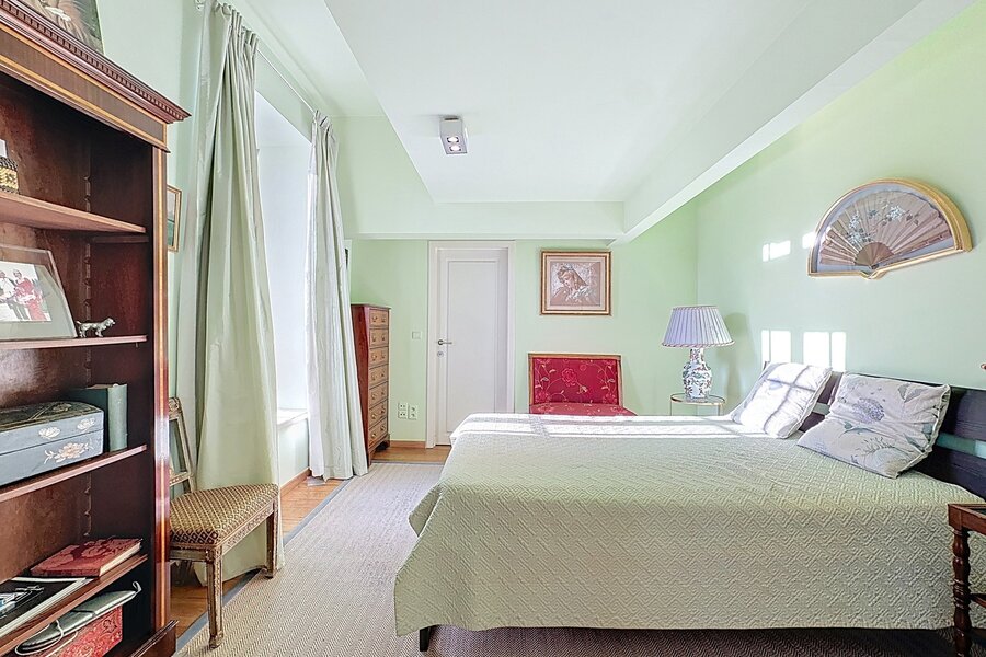 Het nachtgedeelte omvat een master suite met dressing en een volledige marmeren badkamer, één slaapkamer met douchekamer en toegang tot een terras van ±9 m², evenals een vestiaire en een gastentoilet.