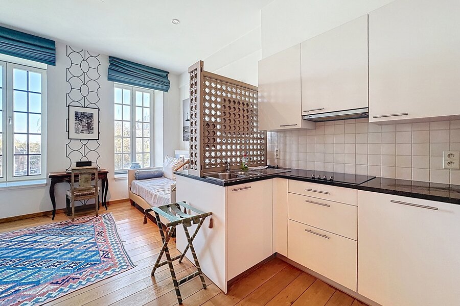 Een aangrenzende studio met douchekamer en toilet vervolledigt het geheel en biedt tal van mogelijkheden: gastenkamer, bureau, onafhankelijke ruimte of opbrengsteigendom.