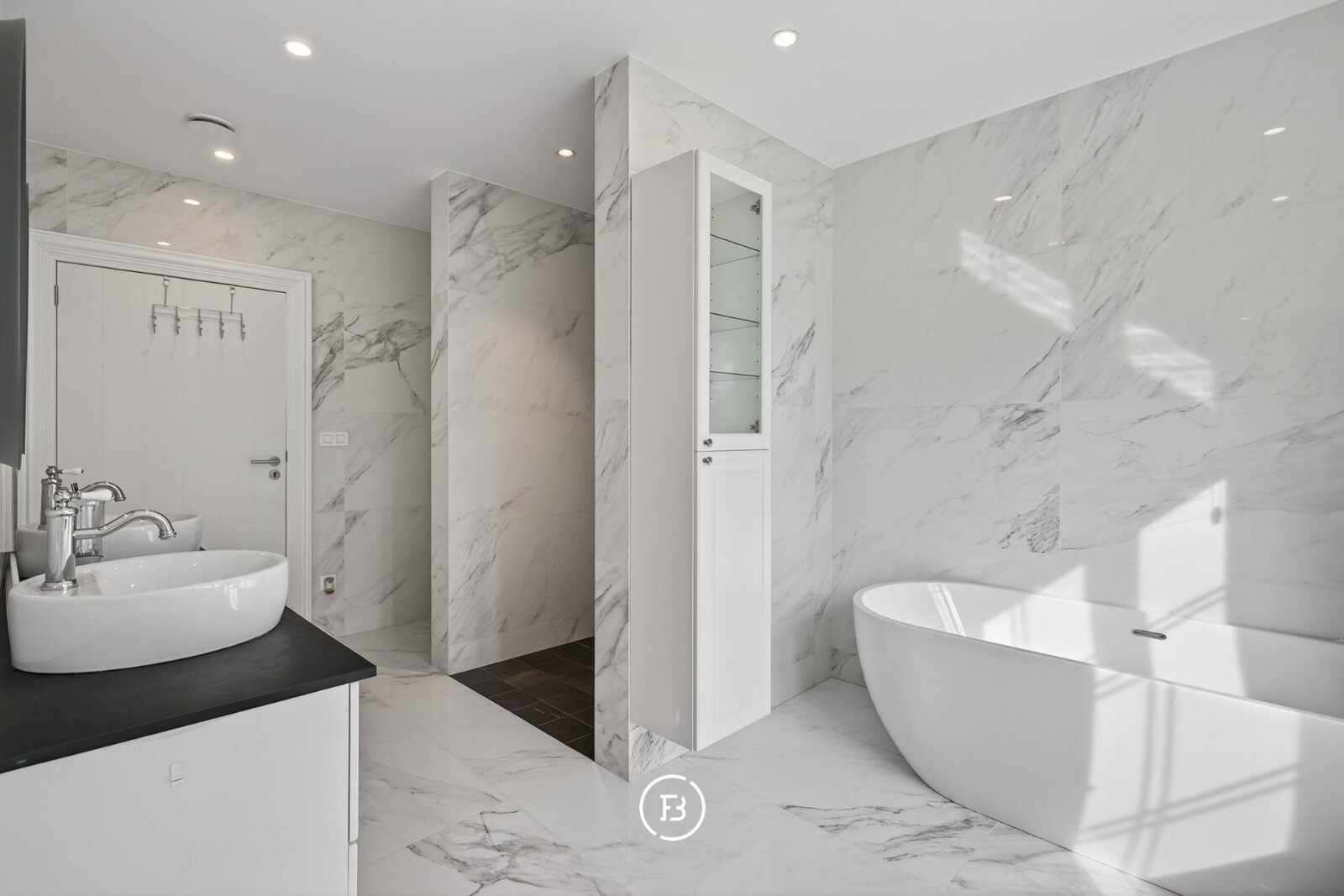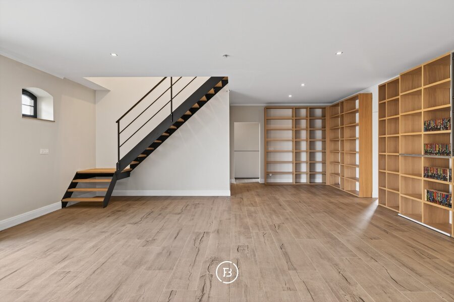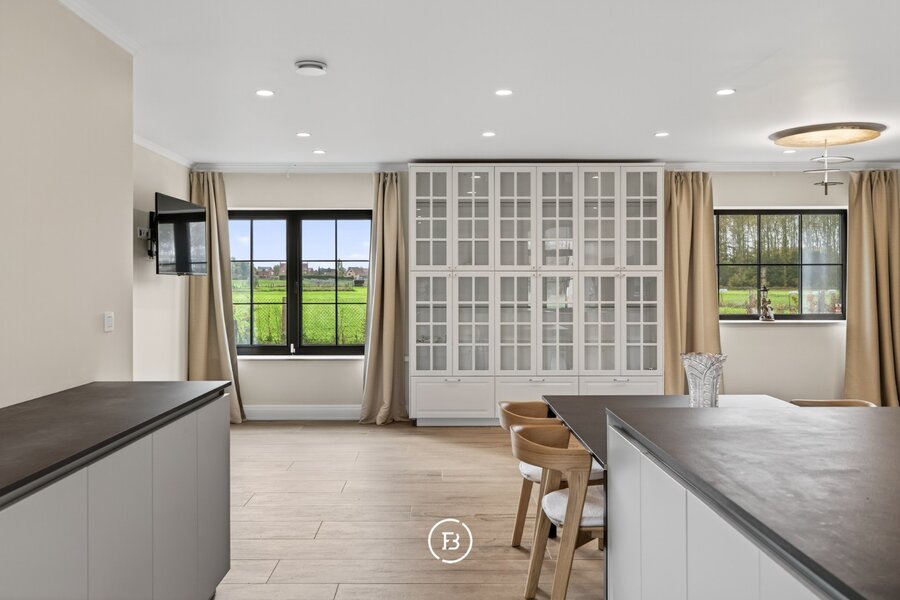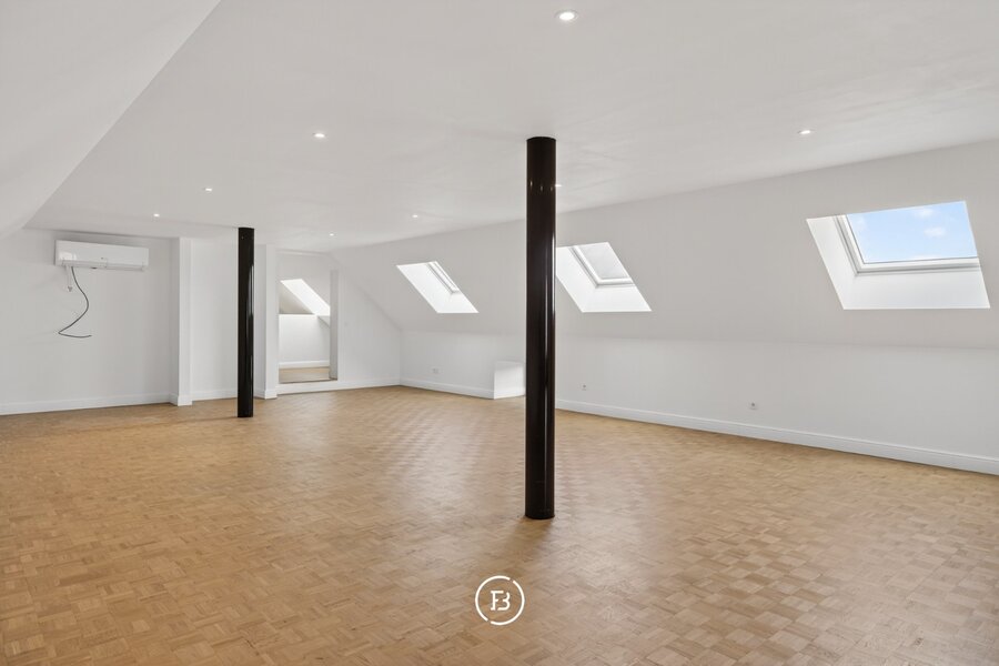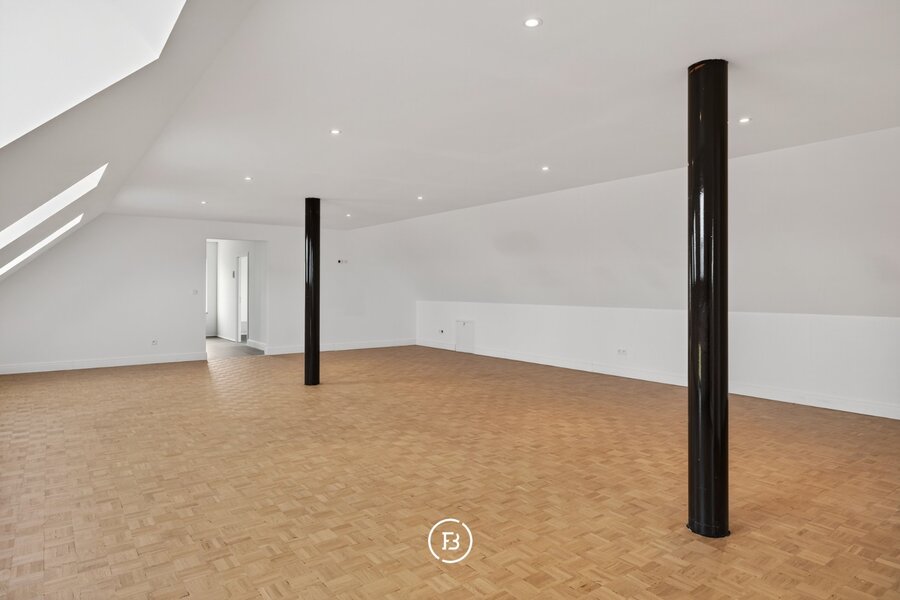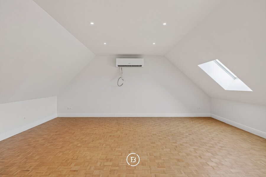 De woning beschikt over drie volwaardige slaapkamers en twee badkamers, waarvan één met een vrijstaand bad en één met een ruime inloopdouche. De leefruimte is open en licht, met een opvallende maatkast die zorgt voor extra karakter. De keuken sluit hier naadloos op aan en is volledig uitgerust, met voldoende plaats voor een eethoek.