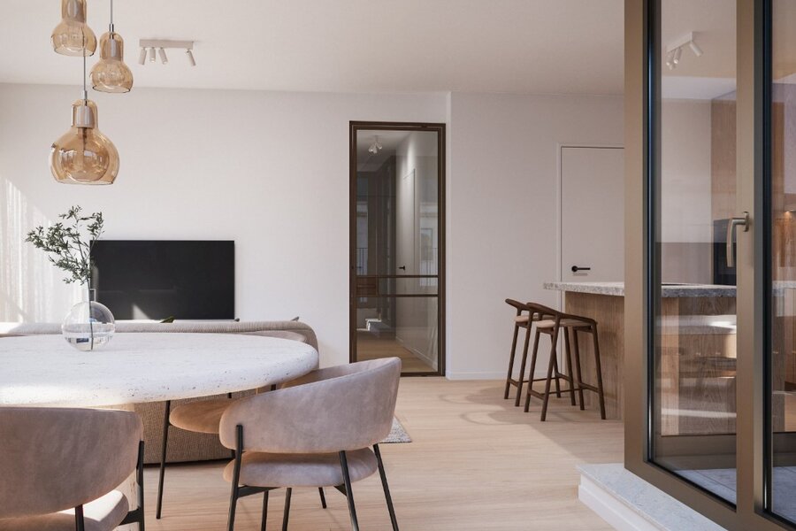 Het penthouse wordt zonder twijfel een echte piece unique. De leefruimte wordt gekenmerkt door spectaculaire raampartijen en een ongezien gevoel van ruimte en licht creëren. Het zonneterras bevindt zich aan de zonnige zijde en biedt uitzonderlijk veel privacy, midden in het centrum van Oostende. Hier combineer je exclusiviteit, uitzicht en rust op een manier die zelden voorkomt aan de kust.