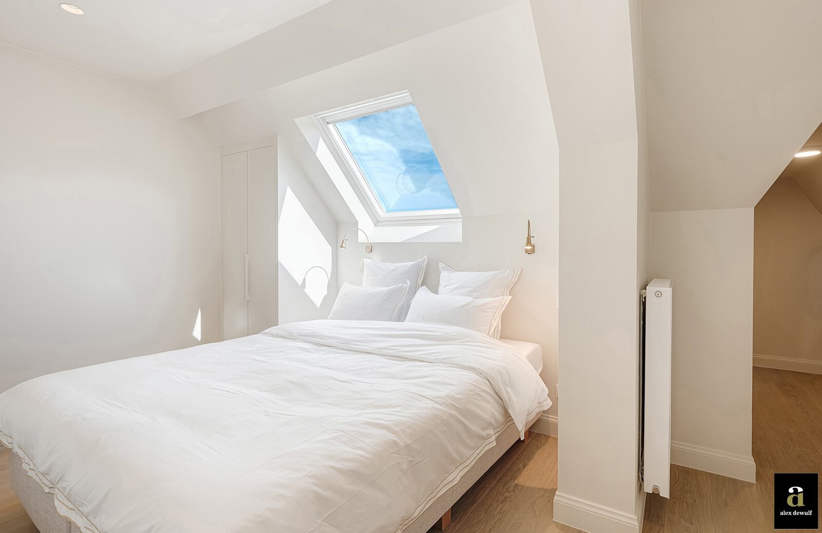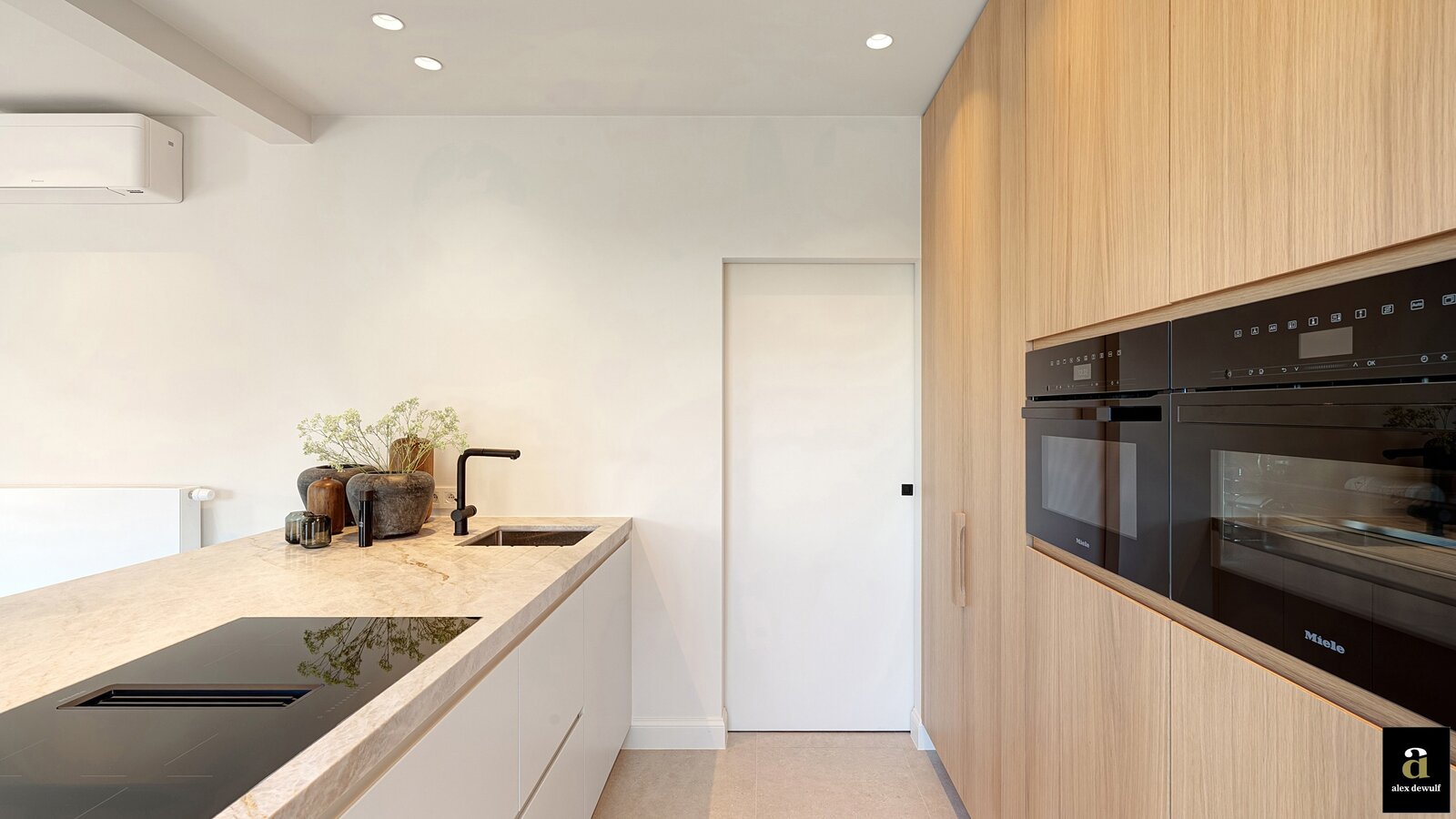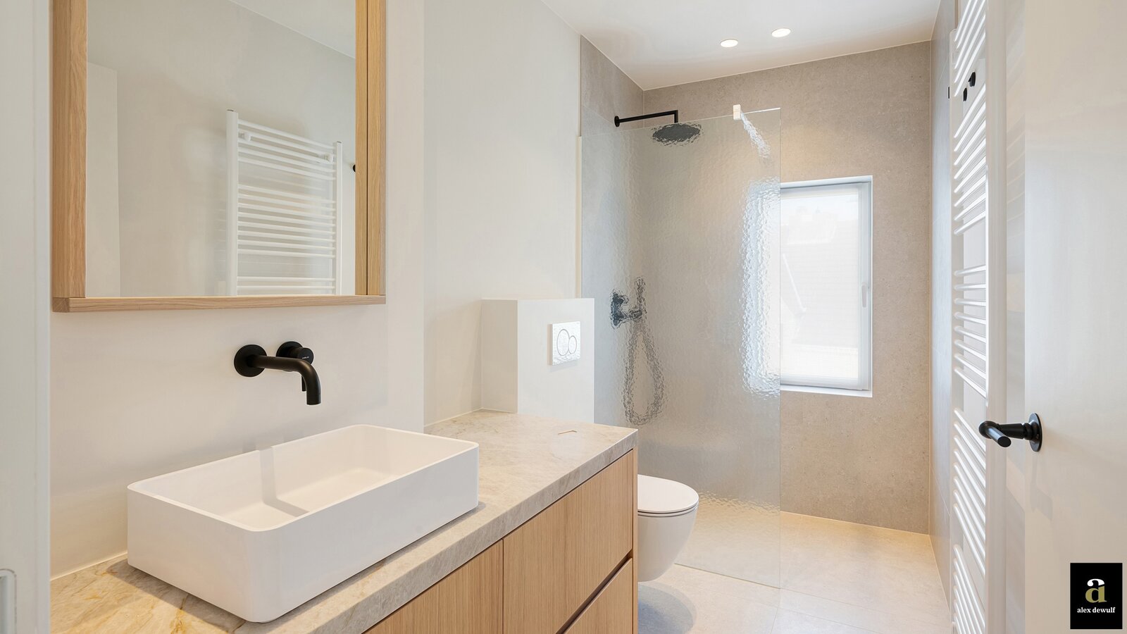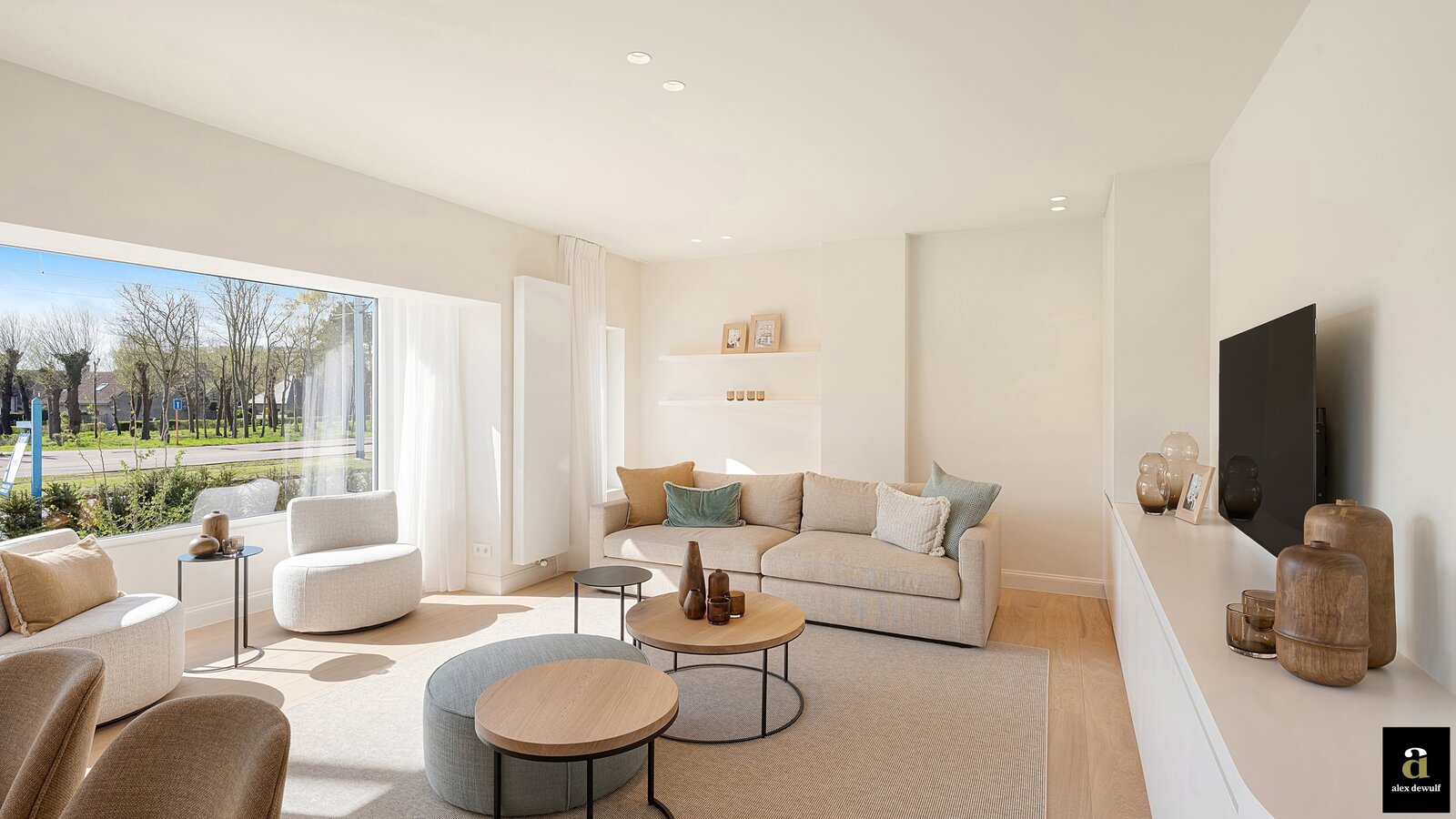 Indeling: Bij het binnenkomen wordt u verwelkomd in een elegante inkomhal die de sfeervolle zithoek aan de straatzijde scheidt van de open leefkeuken aan de tuinzijde. Deze keuken is verfijnd afgewerkt met eiken fineer en volledig uitgerust met kwalitatieve toestellen en dubbele ovens. De villa beschikt over vijf volwaardige slaapkamers, allen voorzien van riante maatkasten. De master suite geniet van een luxueuze ensuite badkamer met ligbad, inloopdouche en toilet; daarnaast zijn er nog drie extra badkamers aanwezig.