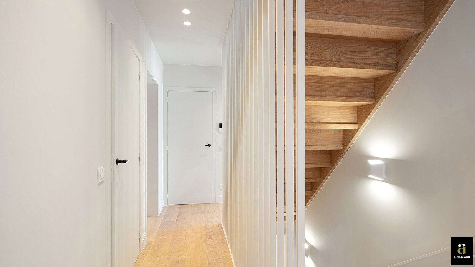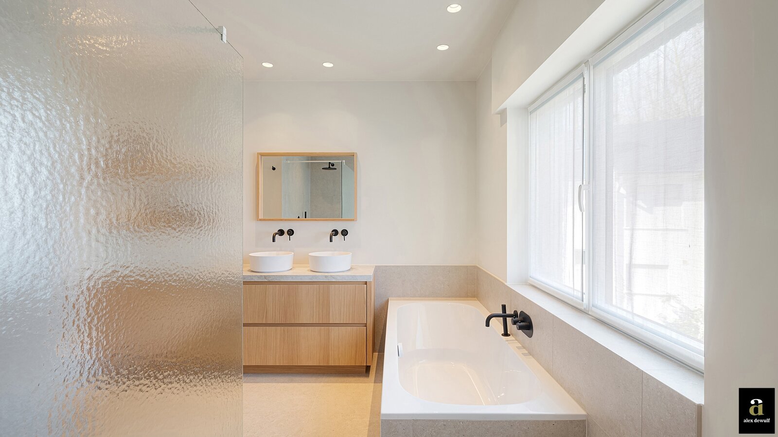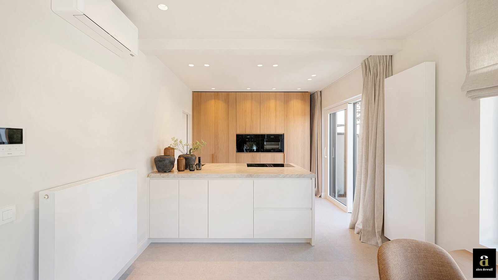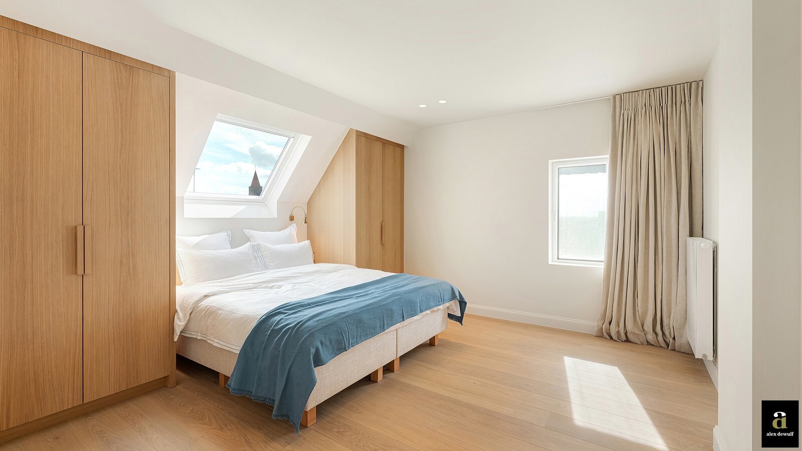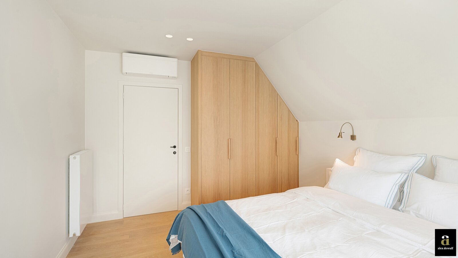 Indeling: Bij het binnenkomen wordt u verwelkomd in een elegante inkomhal die de sfeervolle zithoek aan de straatzijde scheidt van de open leefkeuken aan de tuinzijde. Deze keuken is verfijnd afgewerkt met eiken fineer en volledig uitgerust met kwalitatieve toestellen en dubbele ovens. De villa beschikt over vijf volwaardige slaapkamers, allen voorzien van riante maatkasten. De master suite geniet van een luxueuze ensuite badkamer met ligbad, inloopdouche en toilet; daarnaast zijn er nog drie extra badkamers aanwezig.
