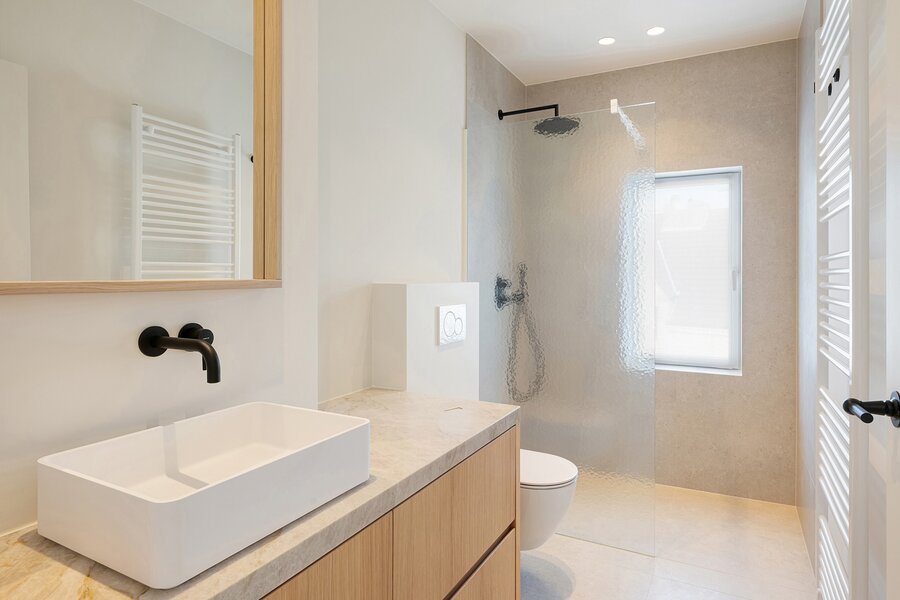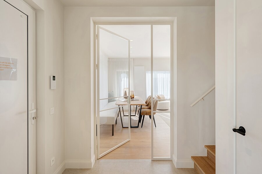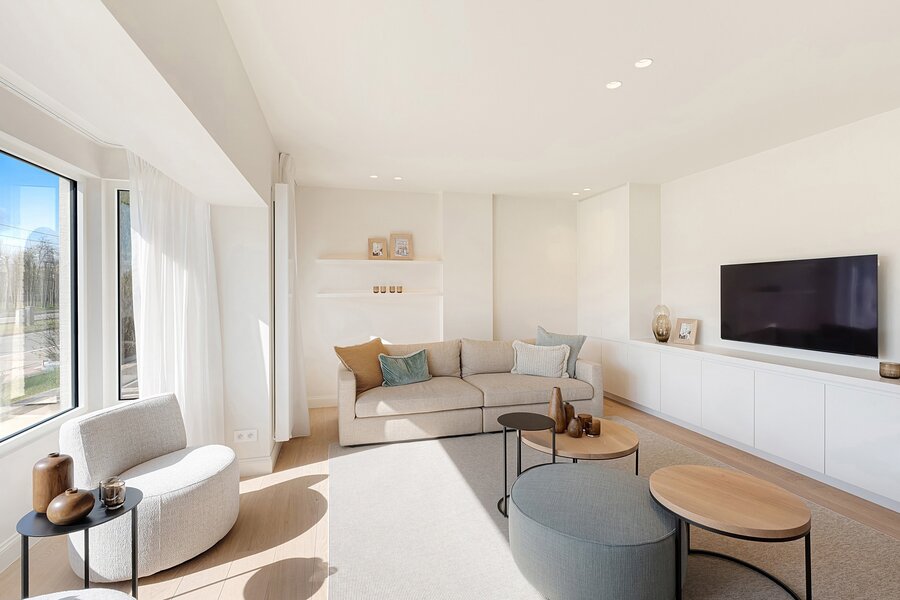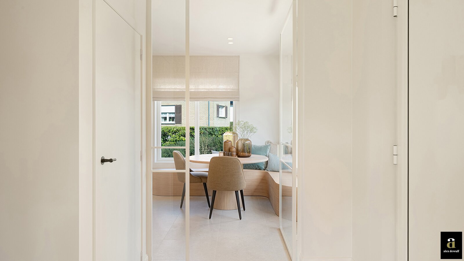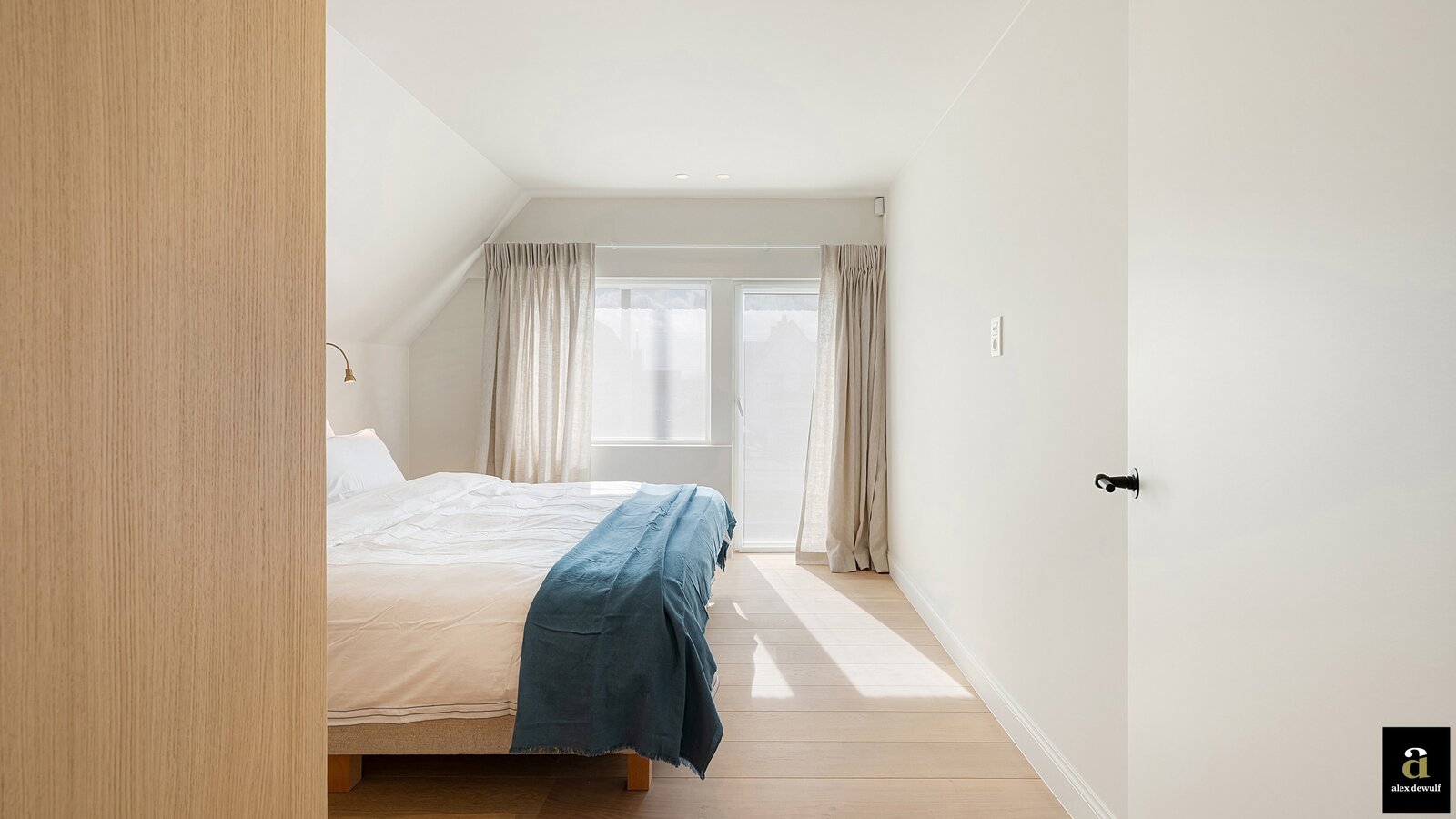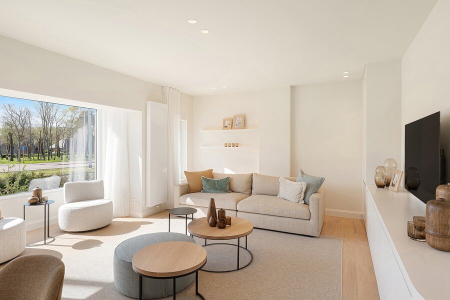 Indeling: Bij het binnenkomen wordt u verwelkomd in een elegante inkomhal die de sfeervolle zithoek aan de straatzijde scheidt van de open leefkeuken aan de tuinzijde. Deze keuken is verfijnd afgewerkt met eiken fineer en volledig uitgerust met kwalitatieve toestellen en dubbele ovens. De villa beschikt over vijf volwaardige slaapkamers, allen voorzien van riante maatkasten. De master suite geniet van een luxueuze ensuite badkamer met ligbad, inloopdouche en toilet; daarnaast zijn er nog drie extra badkamers aanwezig.