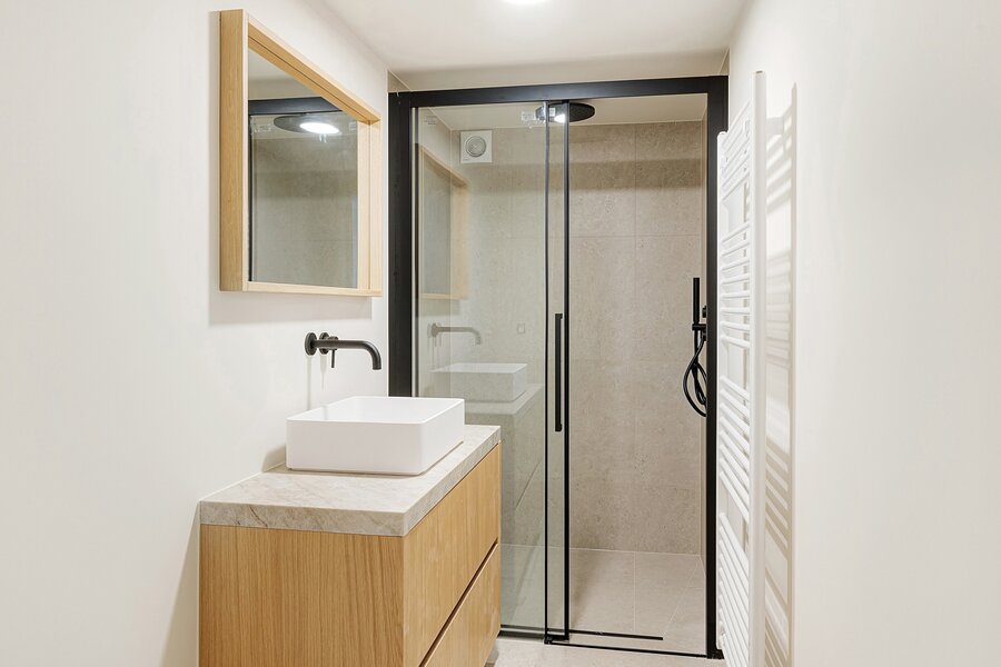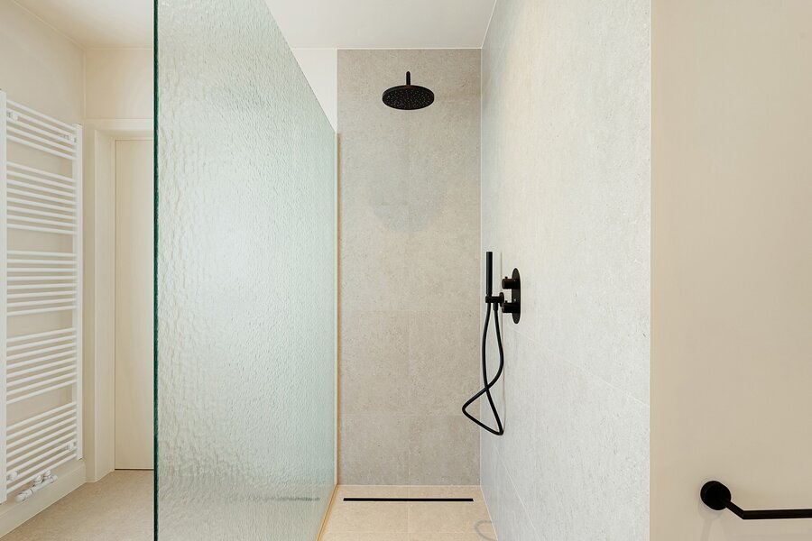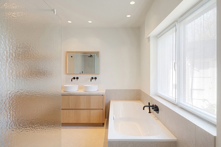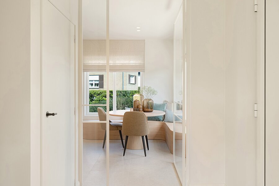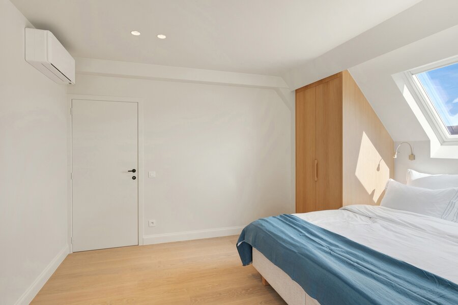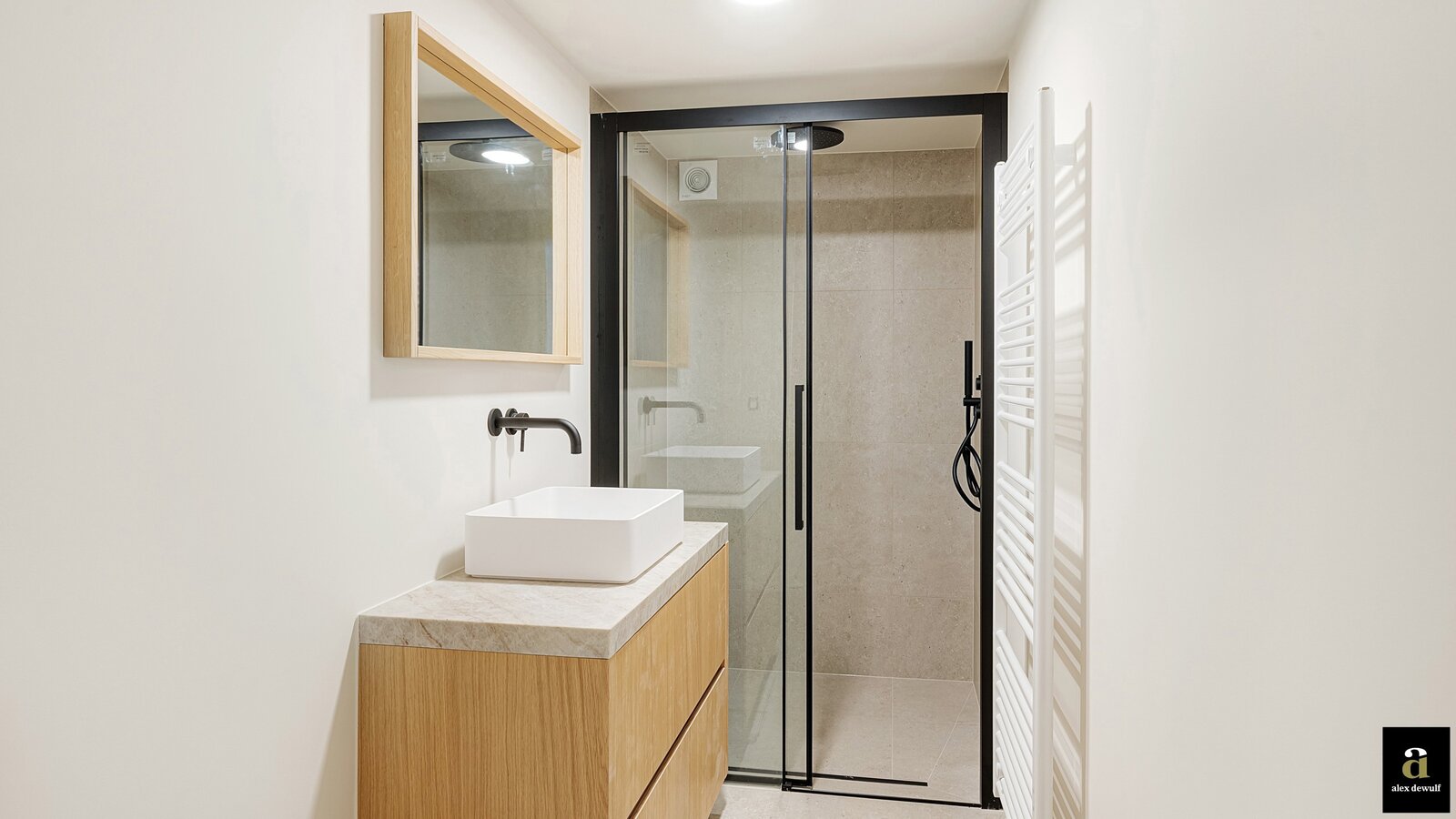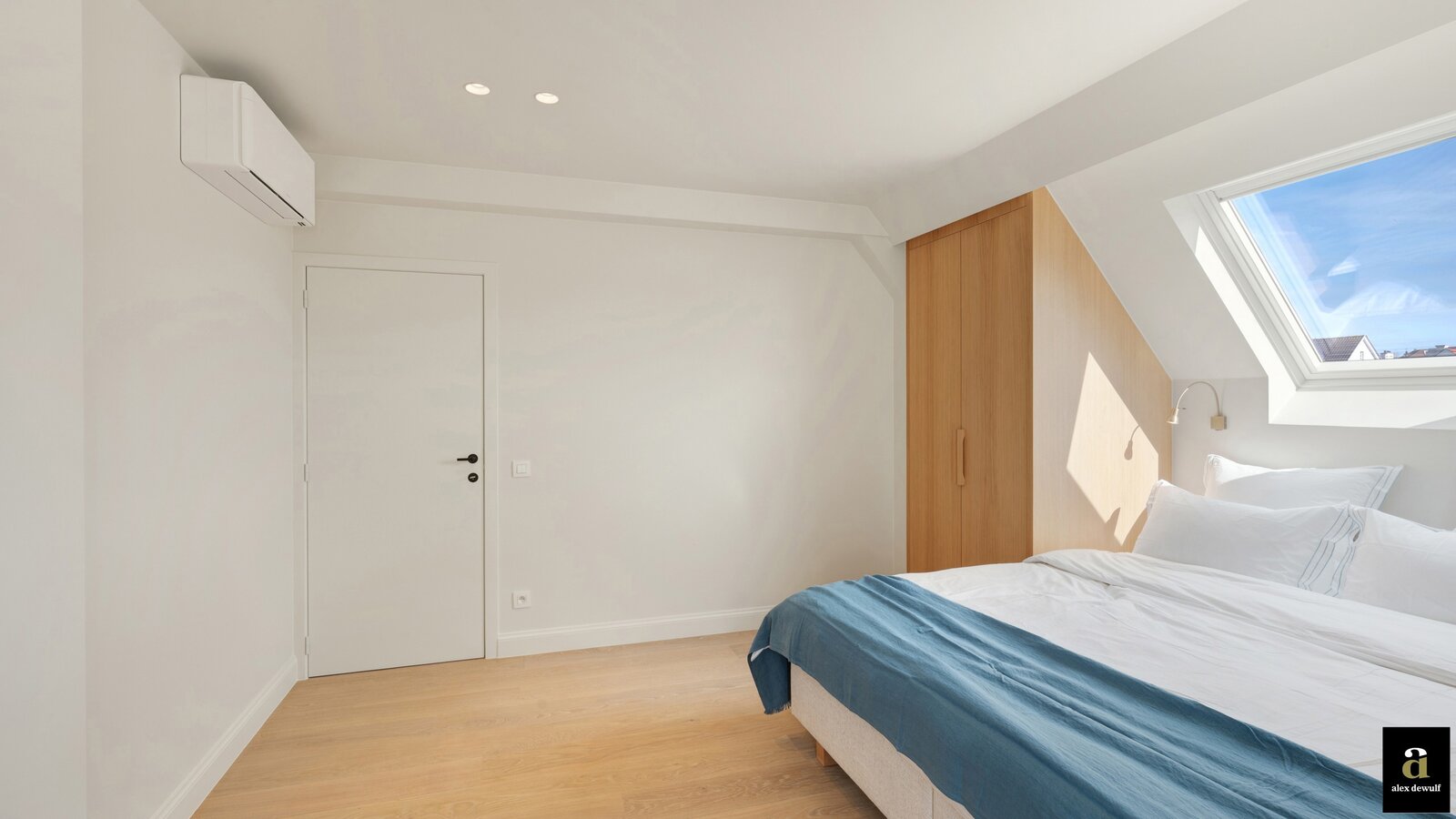 Indeling: Bij het binnenkomen wordt u verwelkomd in een elegante inkomhal die de sfeervolle zithoek aan de straatzijde scheidt van de open leefkeuken aan de tuinzijde. Deze keuken is verfijnd afgewerkt met eiken fineer en volledig uitgerust met kwalitatieve toestellen en dubbele ovens. De villa beschikt over vijf volwaardige slaapkamers, allen voorzien van riante maatkasten. De master suite geniet van een luxueuze ensuite badkamer met ligbad, inloopdouche en toilet; daarnaast zijn er nog drie extra badkamers aanwezig.