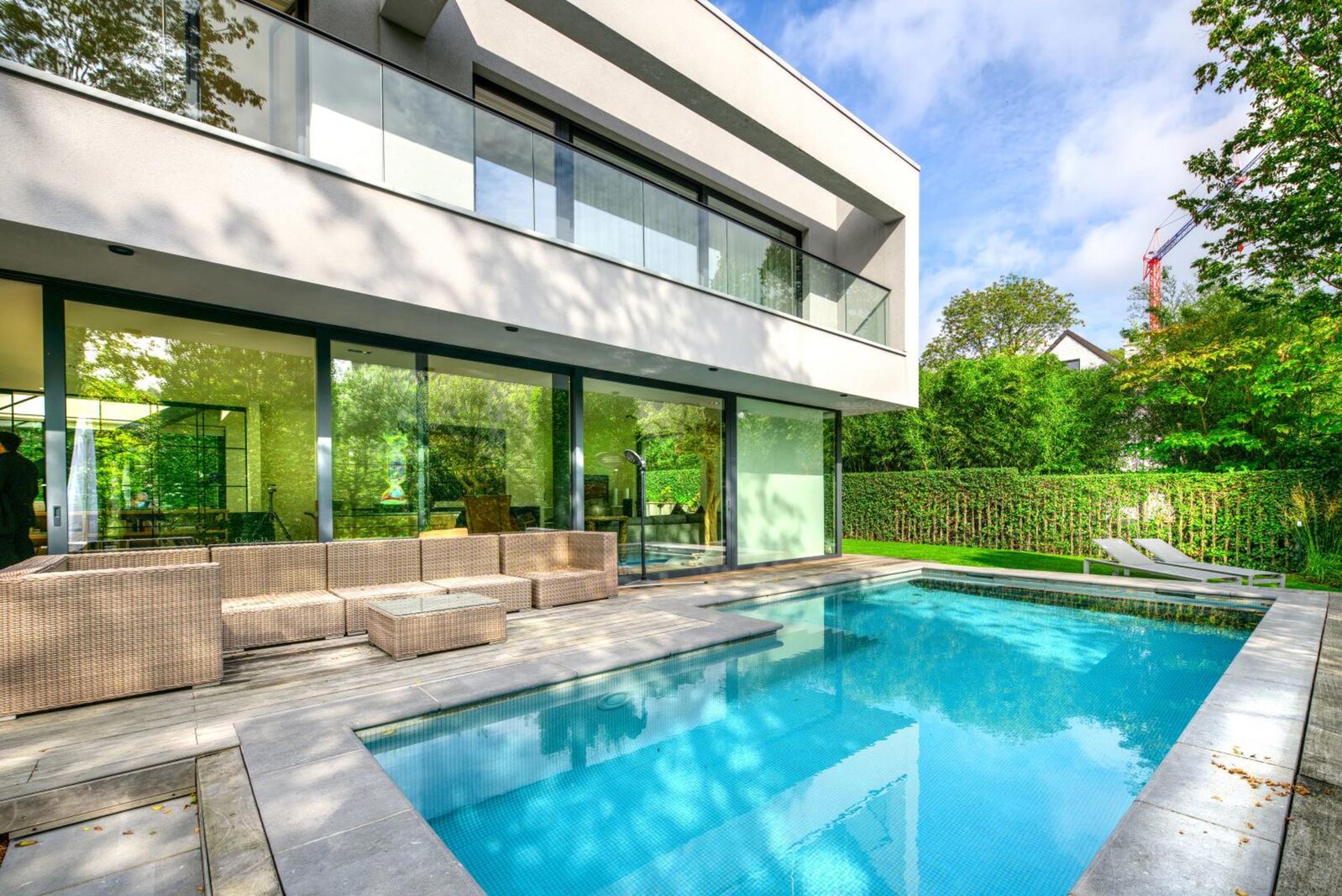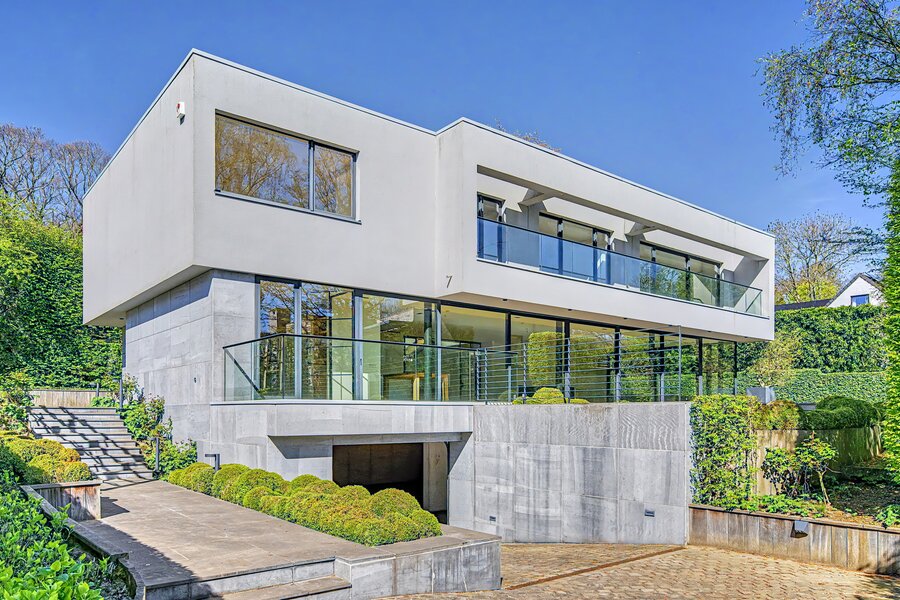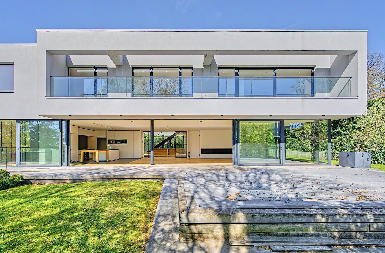 Prestigieuze, moderne villa van ±650 m² (opgegeven oppervlakte op basis van het EPC-certificaat) op een perceel van ±10 are, met prachtige ontvangstruimtes, een volledig uitgeruste open keuken die uitkomt op de eetkamer en de woonkamers, directe toegang tot het terras, een verwarmd zwembad en een tuin op het zuiden. De kelder omvat een garage voor 2-3 auto's, een wijnkelder, een thuisbioscoop, een dienstkamer met badkamer, een wasruimte met sauna en technische ruimtes. Op de verdieping bevinden zich een master suite met dressing en dubbele badkamer, drie slaapkamers met aangrenzende badkamers en een balkon op het zuiden. Uitstekende ligging, dicht bij scholen, winkels en sportclubs, met hoogwaardige voorzieningen.