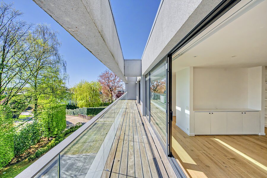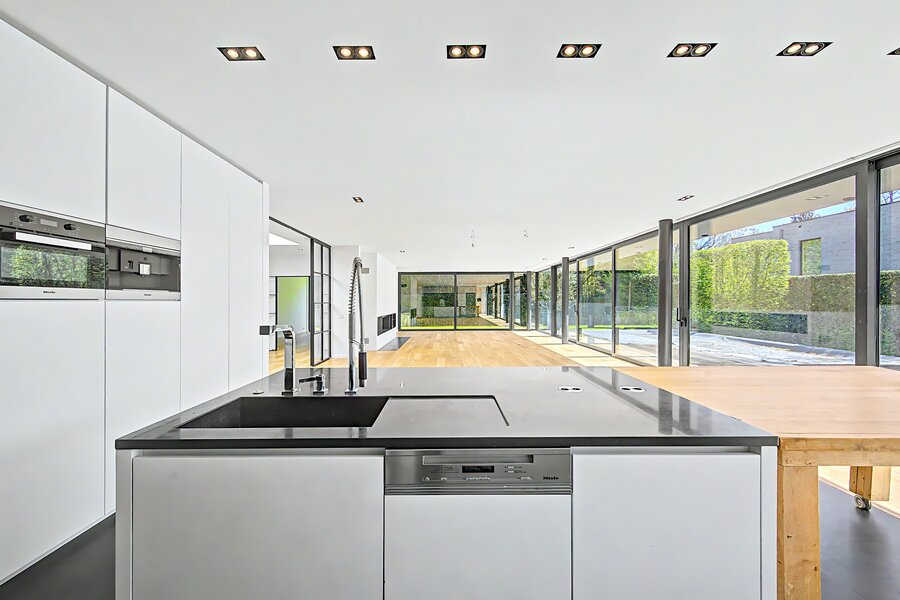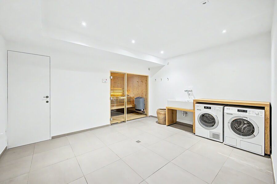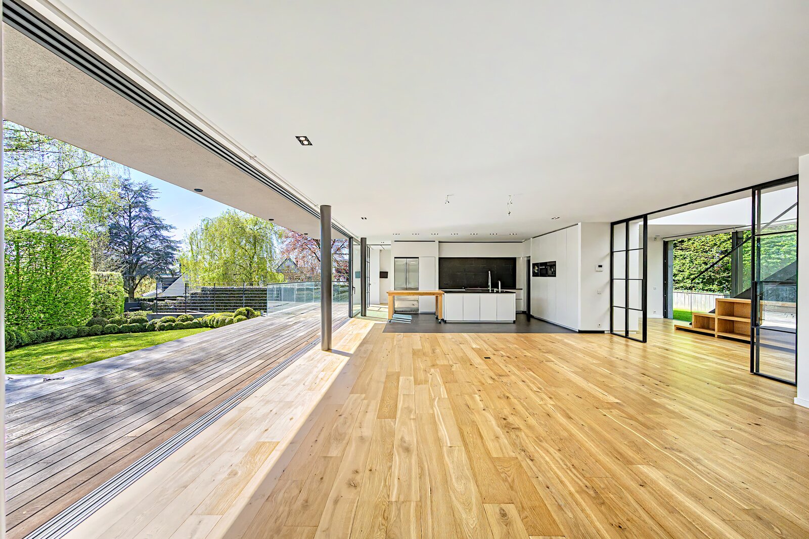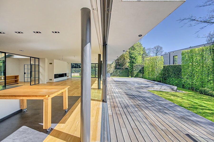 Prestigieuze, moderne villa van ±650 m² (opgegeven oppervlakte op basis van het EPC-certificaat) op een perceel van ±10 are, met prachtige ontvangstruimtes, een volledig uitgeruste open keuken die uitkomt op de eetkamer en de woonkamers, directe toegang tot het terras, een verwarmd zwembad en een tuin op het zuiden. De kelder omvat een garage voor 2-3 auto's, een wijnkelder, een thuisbioscoop, een dienstkamer met badkamer, een wasruimte met sauna en technische ruimtes. Op de verdieping bevinden zich een master suite met dressing en dubbele badkamer, drie slaapkamers met aangrenzende badkamers en een balkon op het zuiden. Uitstekende ligging, dicht bij scholen, winkels en sportclubs, met hoogwaardige voorzieningen.