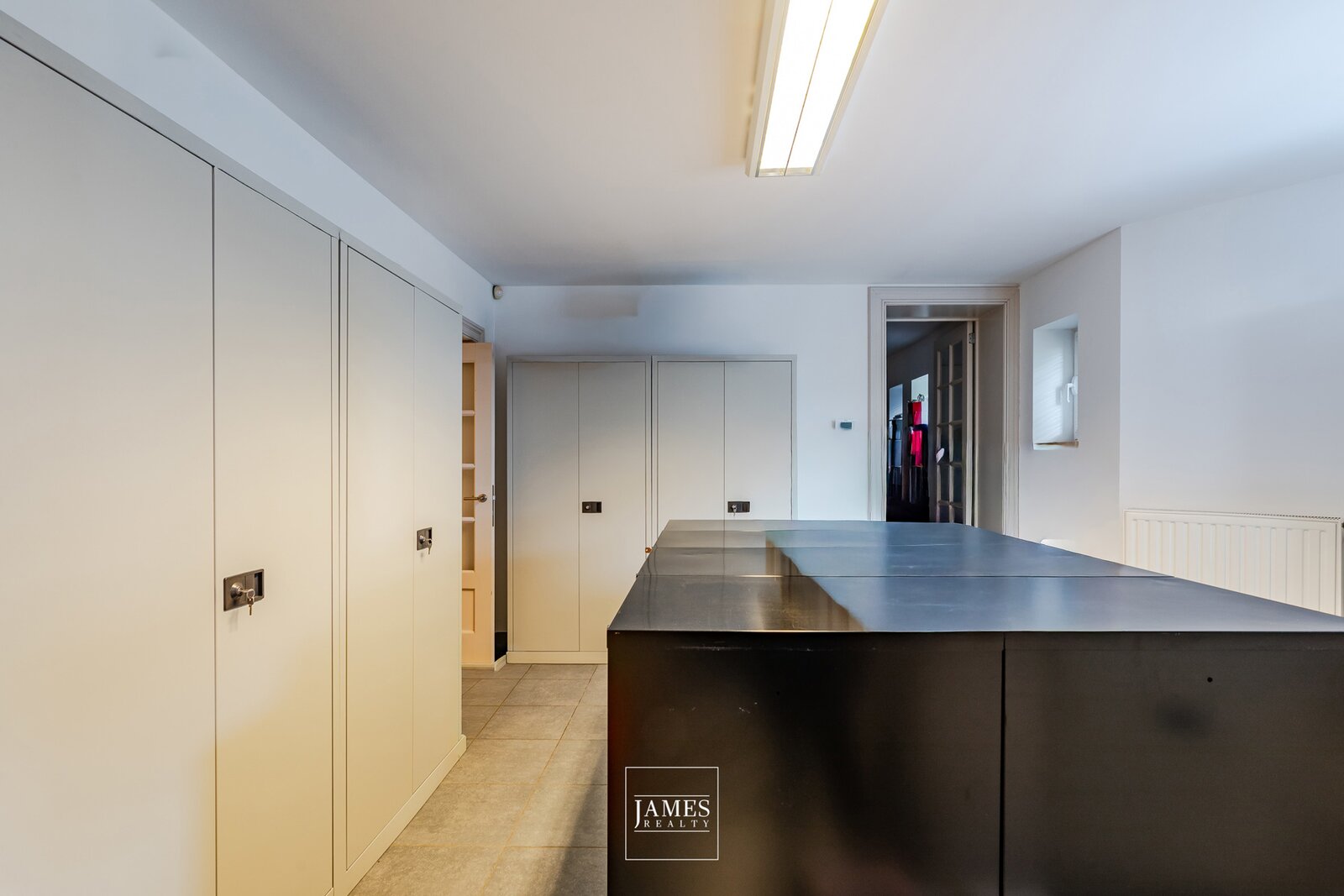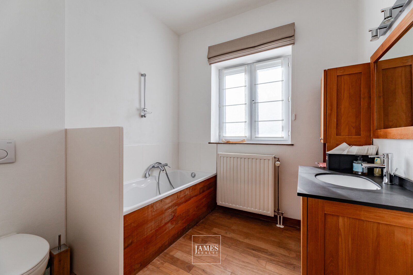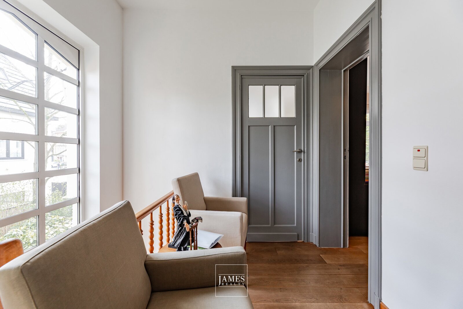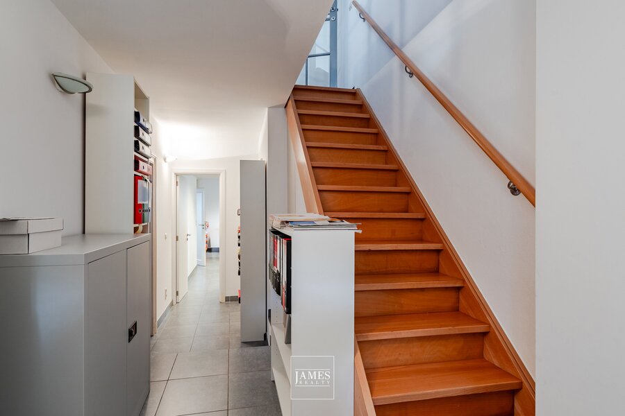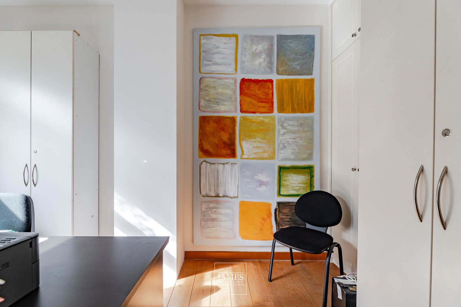 Op de verdieping laten de volumes toe om ofwel een groot kantoor met bijkomende ruimte en badkamer in te richten, of een comfortabele master suite te creëren.