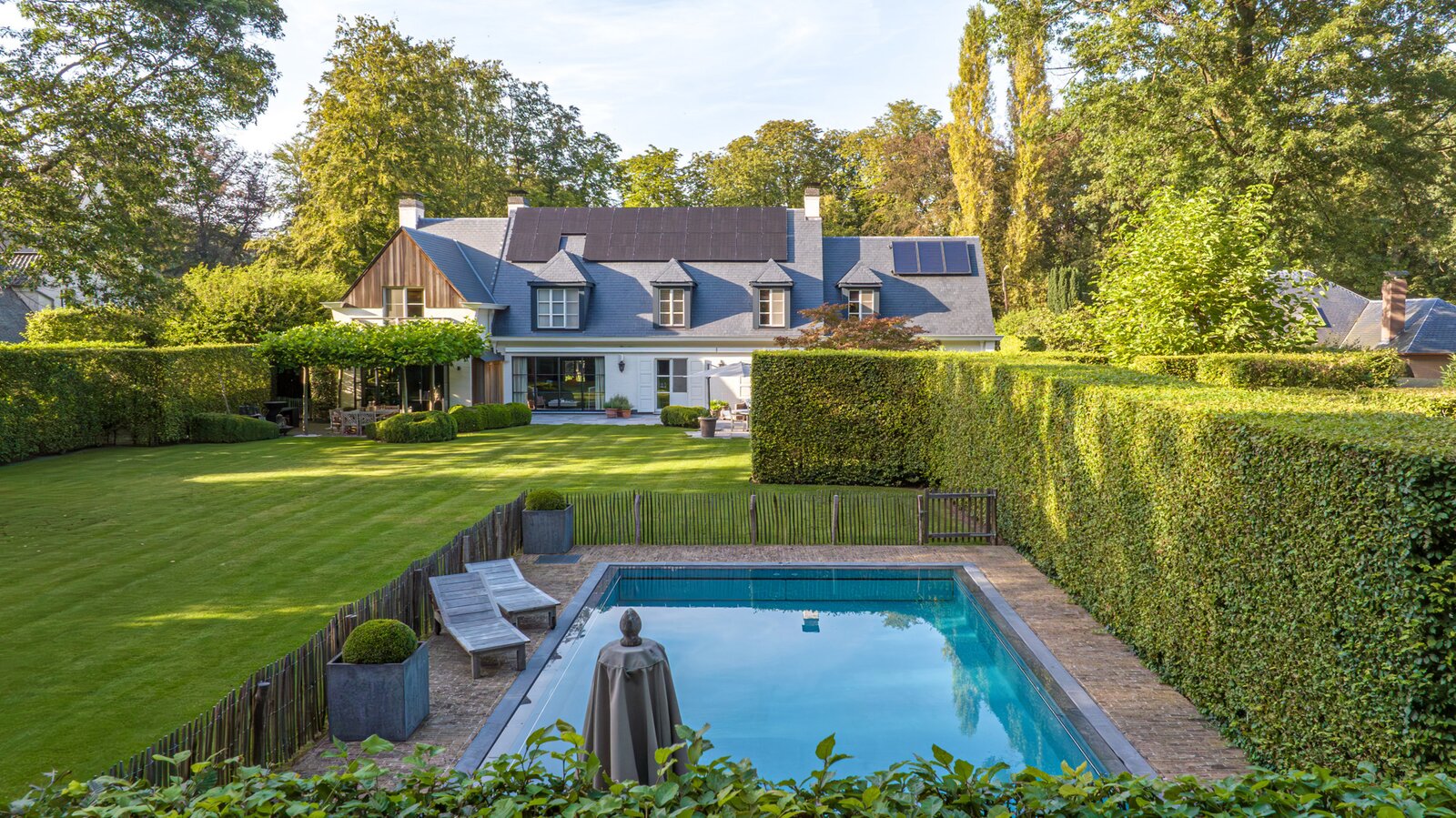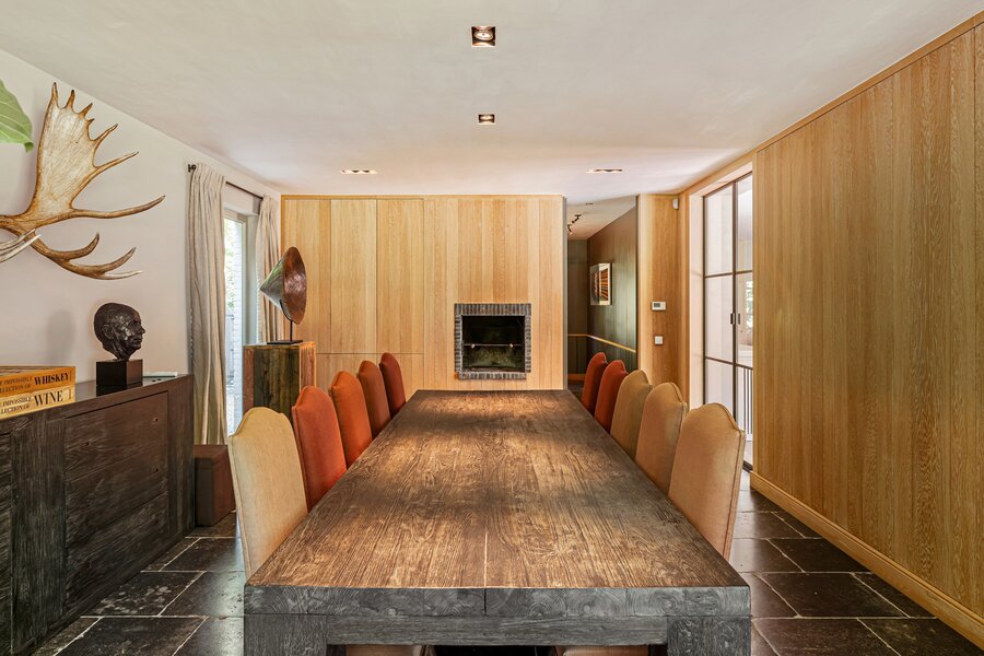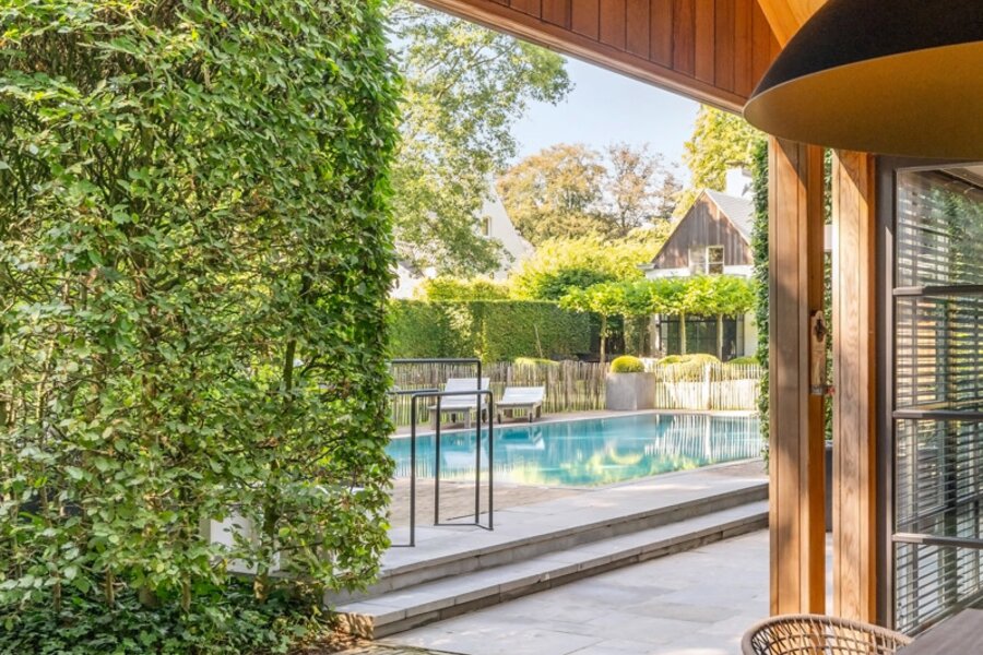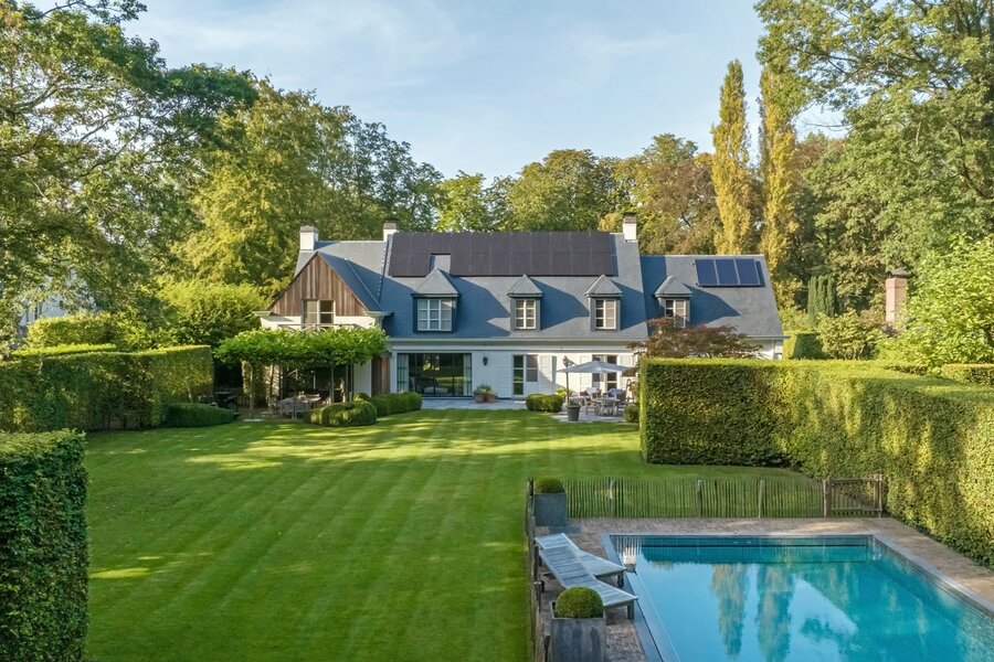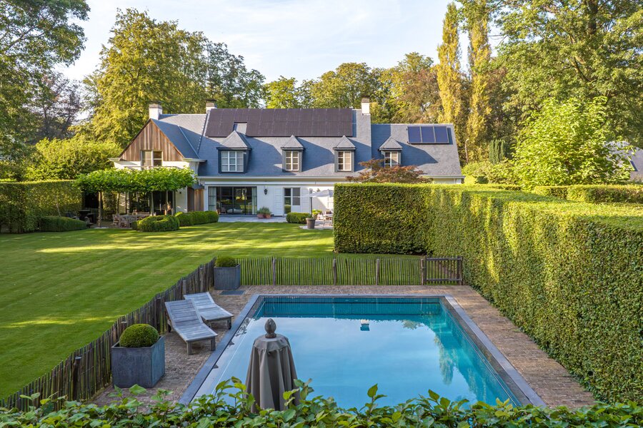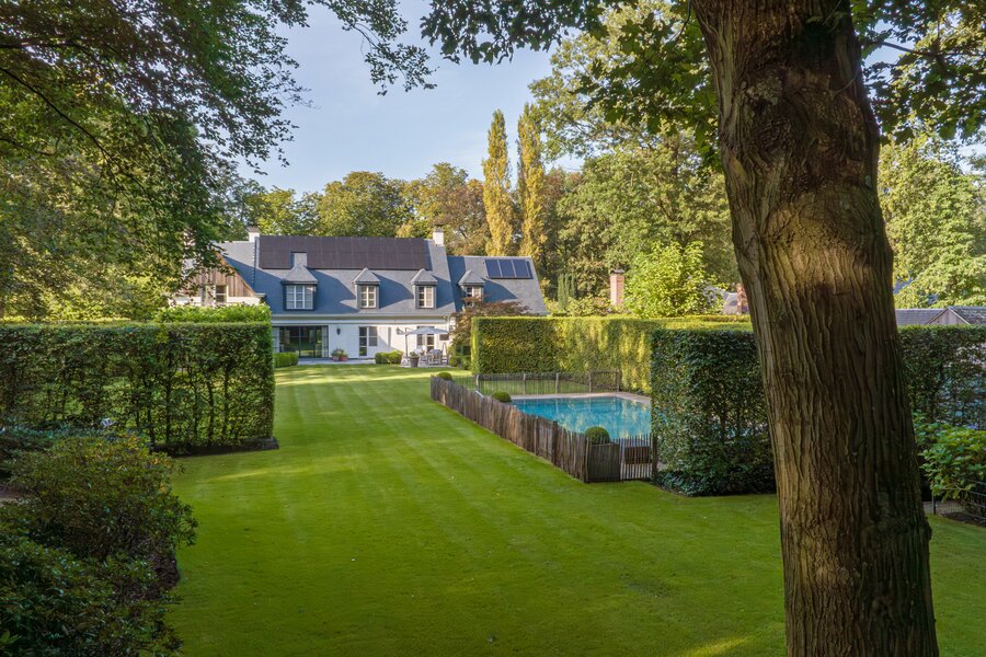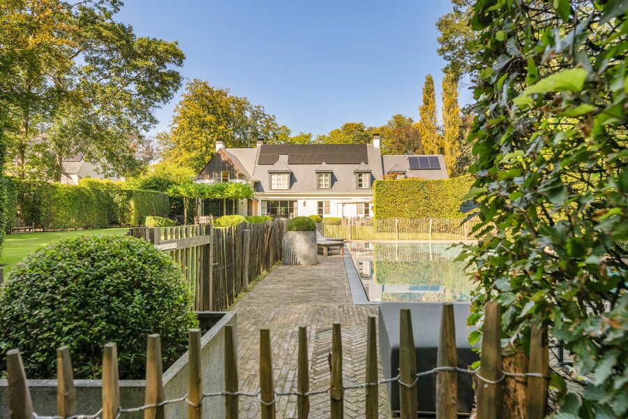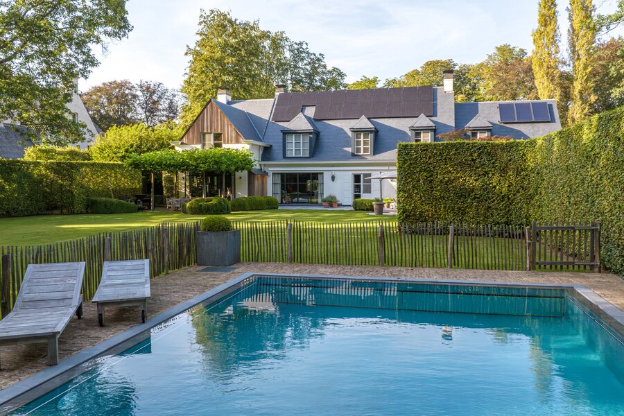 Er is een elegant ingericht bureau op de begane grond, een keuken met eetkamer, een royale eetkamer met een aparte openhaard/BBQ en een ruime salon met open haard, ideaal voor entertainment. De woning beschikt over een garage voor 2 auto's en een volledig vernieuwd dak met natuurleien (in 2023). De vloeren en parketten zijn prachtig bewaard gebleven, en de woning is uitgerust met domotica voor ultiem comfort. Buiten kunt u genieten van een luxueuze levensstijl met een poolhouse inclusief keuken, douche, sauna en geïntegreerde BBQ, naast een overloopzwembad van 12 x 5,5 meter. Het zwembad is omringd door een prachtig aangelegde tuin met een Japanse visvijver.