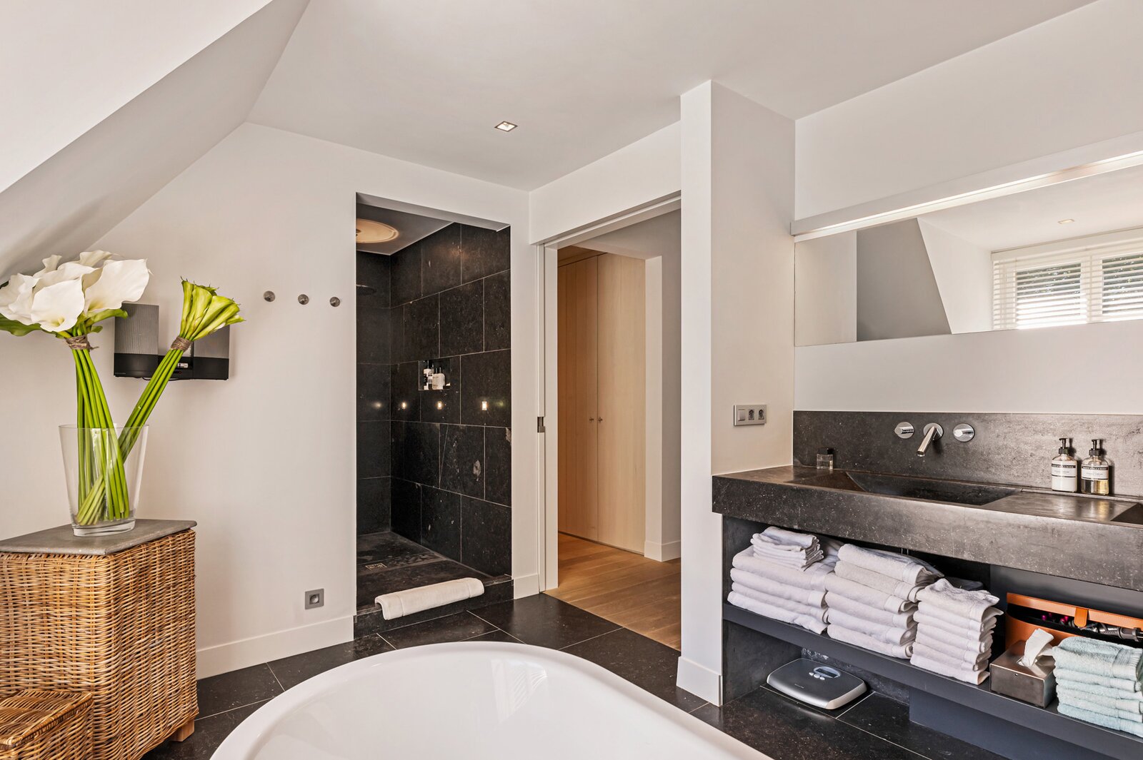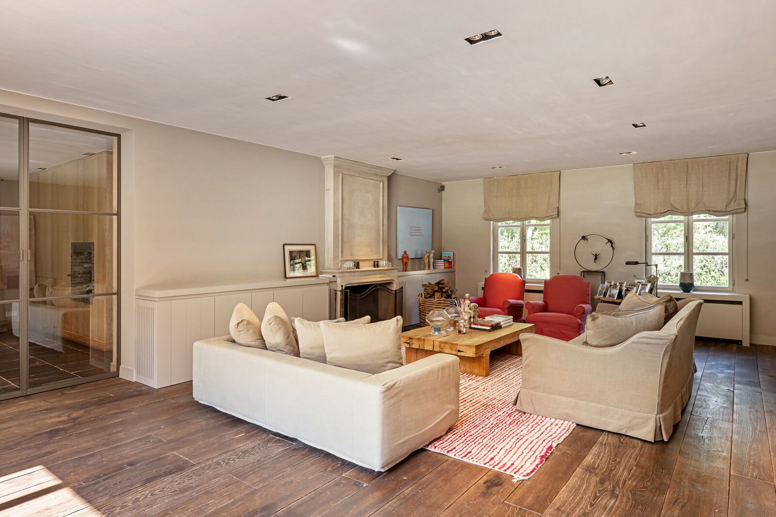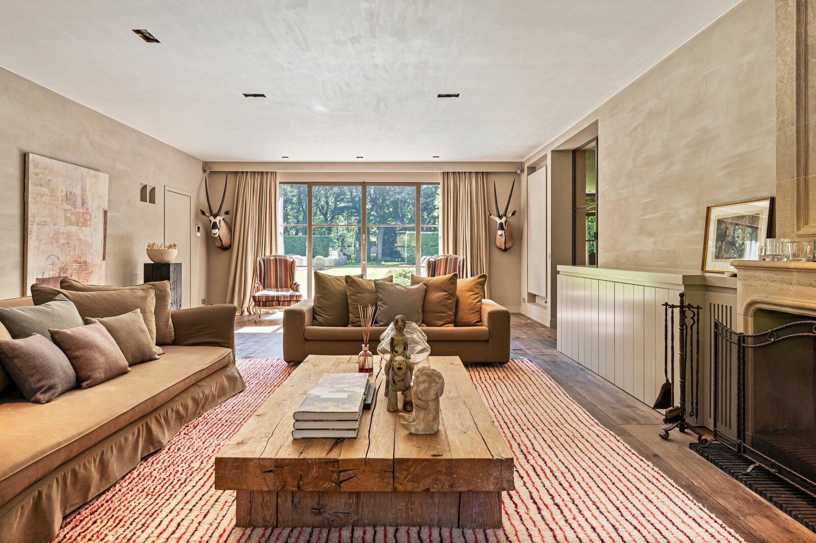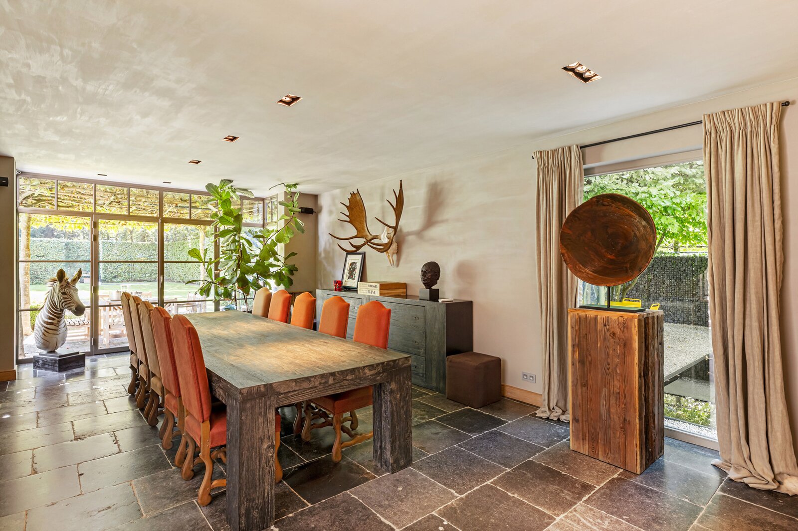 Er is een elegant ingericht bureau op de begane grond, een keuken met eetkamer, een royale eetkamer met een aparte openhaard/BBQ en een ruime salon met open haard, ideaal voor entertainment. De woning beschikt over een garage voor 2 auto's en een volledig vernieuwd dak met natuurleien (in 2023). De vloeren en parketten zijn prachtig bewaard gebleven, en de woning is uitgerust met domotica voor ultiem comfort. Buiten kunt u genieten van een luxueuze levensstijl met een poolhouse inclusief keuken, douche, sauna en geïntegreerde BBQ, naast een overloopzwembad van 12 x 5,5 meter. Het zwembad is omringd door een prachtig aangelegde tuin met een Japanse visvijver.