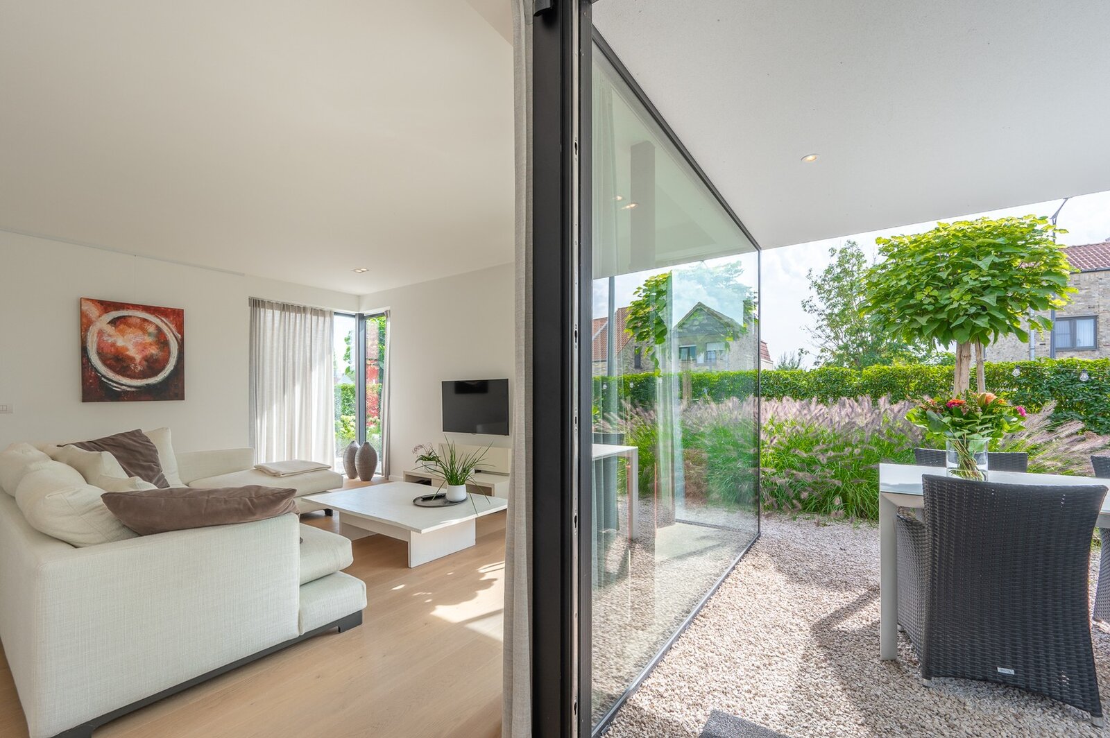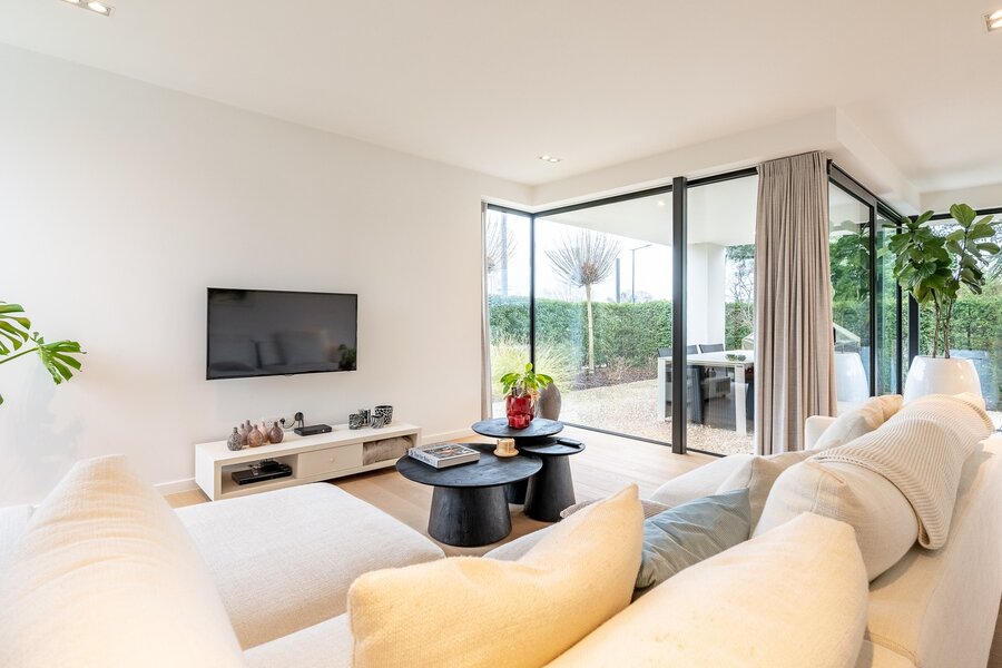 Prachtige hedendaagse villa met zonnige tuin en terrassen op fietsafstand van de zee.