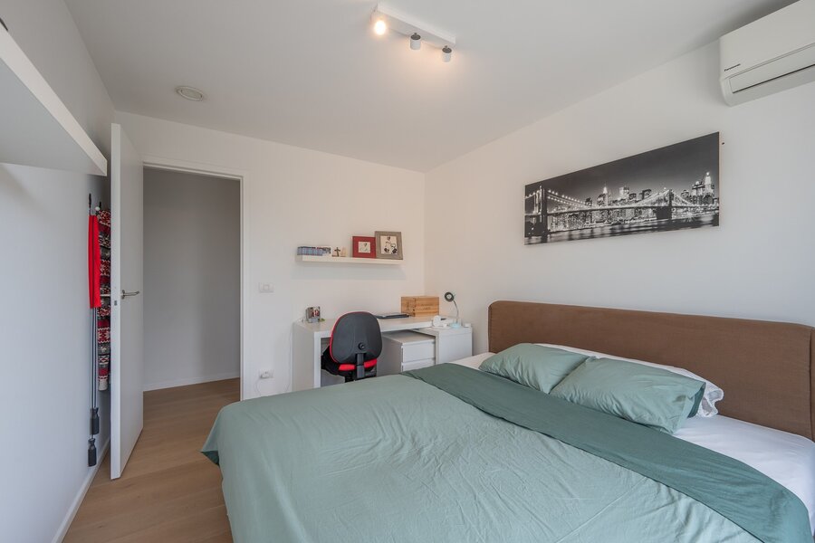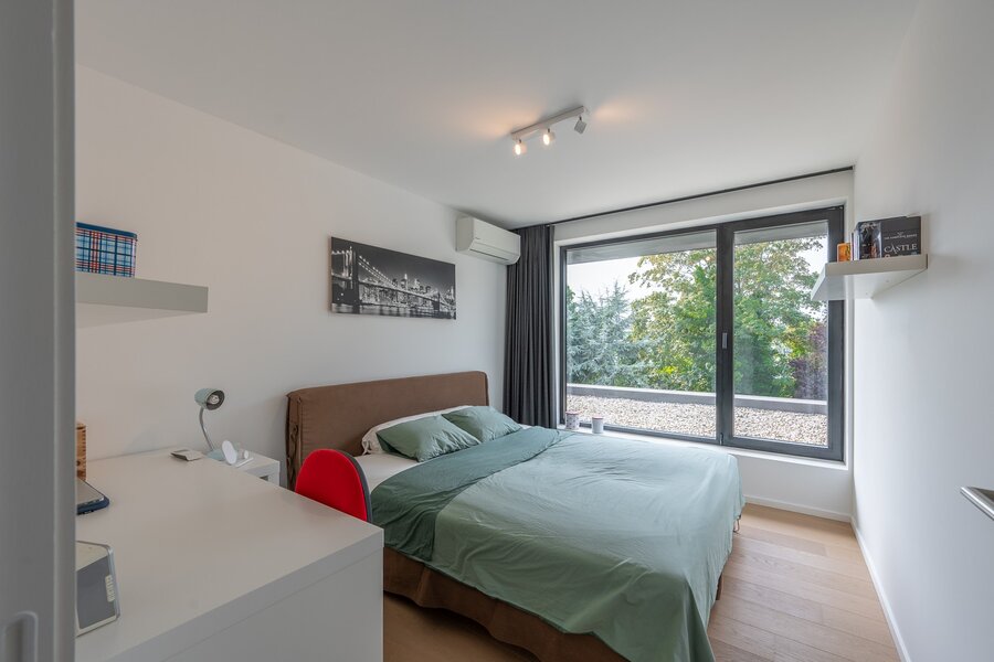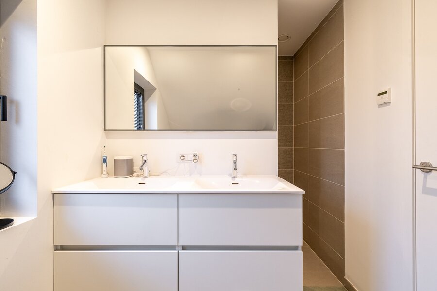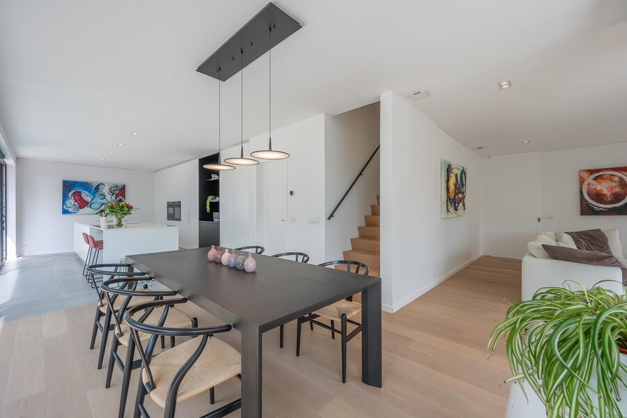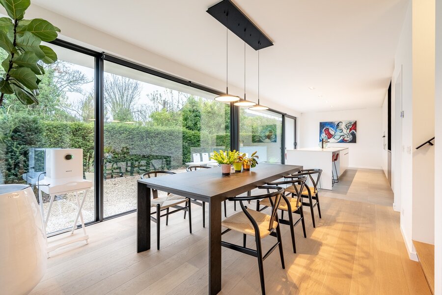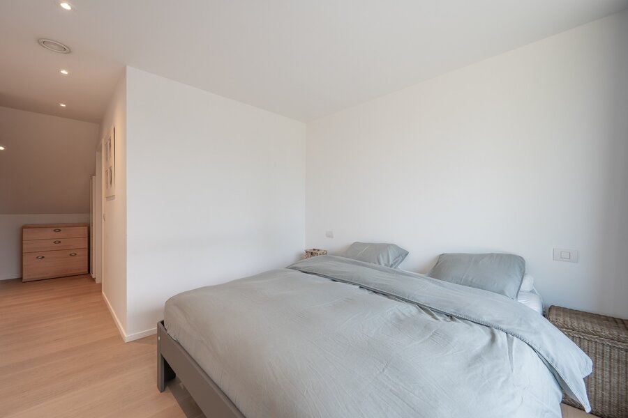 Hedendaagse, recente villa met zonnige tuin en terrassen, rustig gelegen in een residentiële wijk op wandelafstand van het centrum van Knokke. Indeling: Ruime inkomhal met vestiaire en gastentoilet. Lichtrijke woon- en eetkamer met directe toegang tot het zonnige terras en de tuin. Moderne, volledig uitgeruste open keuken met ontbijthoek. Aansluitend een praktische berging met mogelijkheid tot stallen van fietsen. Op de eerste verdieping bevindt zich de master bedroom met dressing en en-suite badkamer. Daarnaast is er een tweede en derde ruime slaapkamer, een extra dressing, een douchekamer en een apart toilet op de nachthal. Verder is er een grote, functionele berging/wasplaats en een zolderruimte.