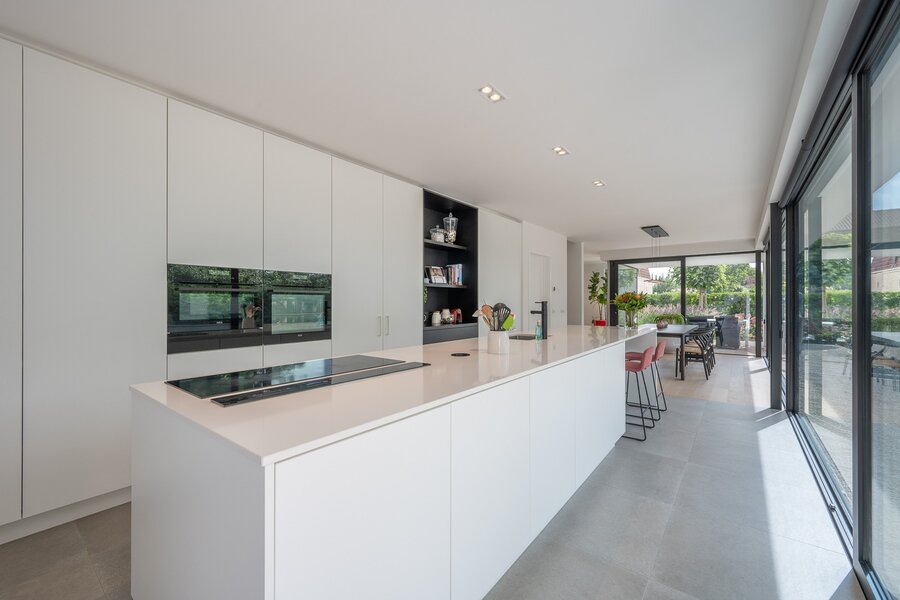 Buiten beschikt de woning over een carport voor twee wagens en een privatieve oprit. De zuid/zuidwest georiënteerde tuin met zonnig terras zorgt voor een aangename buitenbeleving. De woning is afgewerkt met kwalitatieve materialen. Contacteer Knokke Real Estate voor het inplannen van een bezoek.