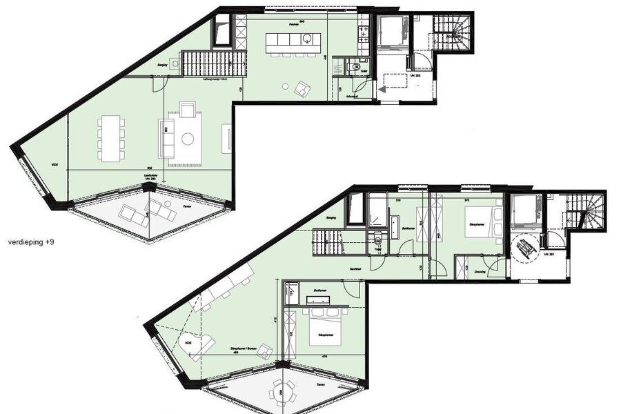 - slaapkamer aan de voorzijde met toegang tot het terras