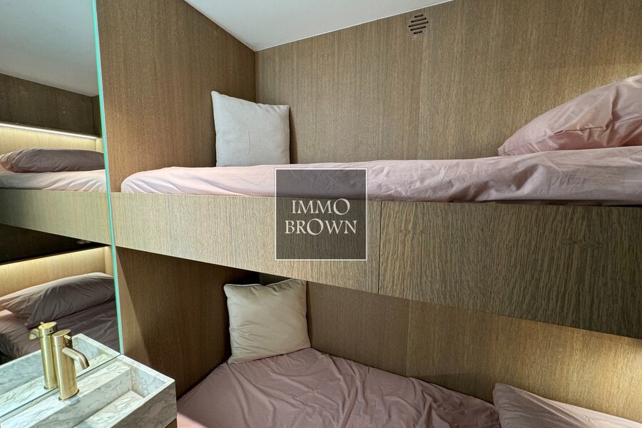 3 slaapkamers waarvan 1 slaapkamer ingericht is met een ingebouwd stapelbed. De hoofdslaapkamer is voorzien van een privatieve douchekamer voorzien van een lavabo, douche en toilet. Gemeenschappelijke douchekamer met douche en lavabo op de nachthal voor de 2 andere slaapkamers.