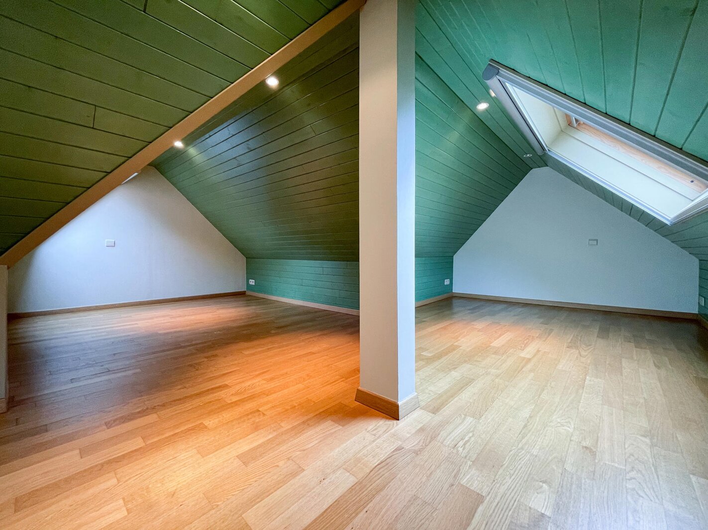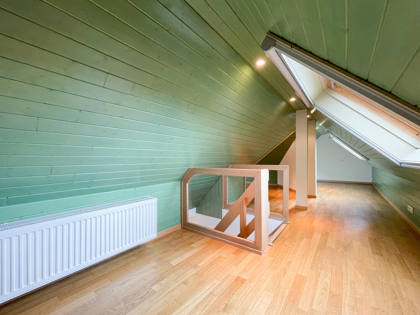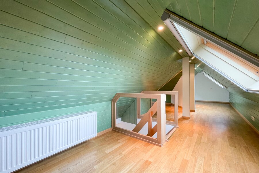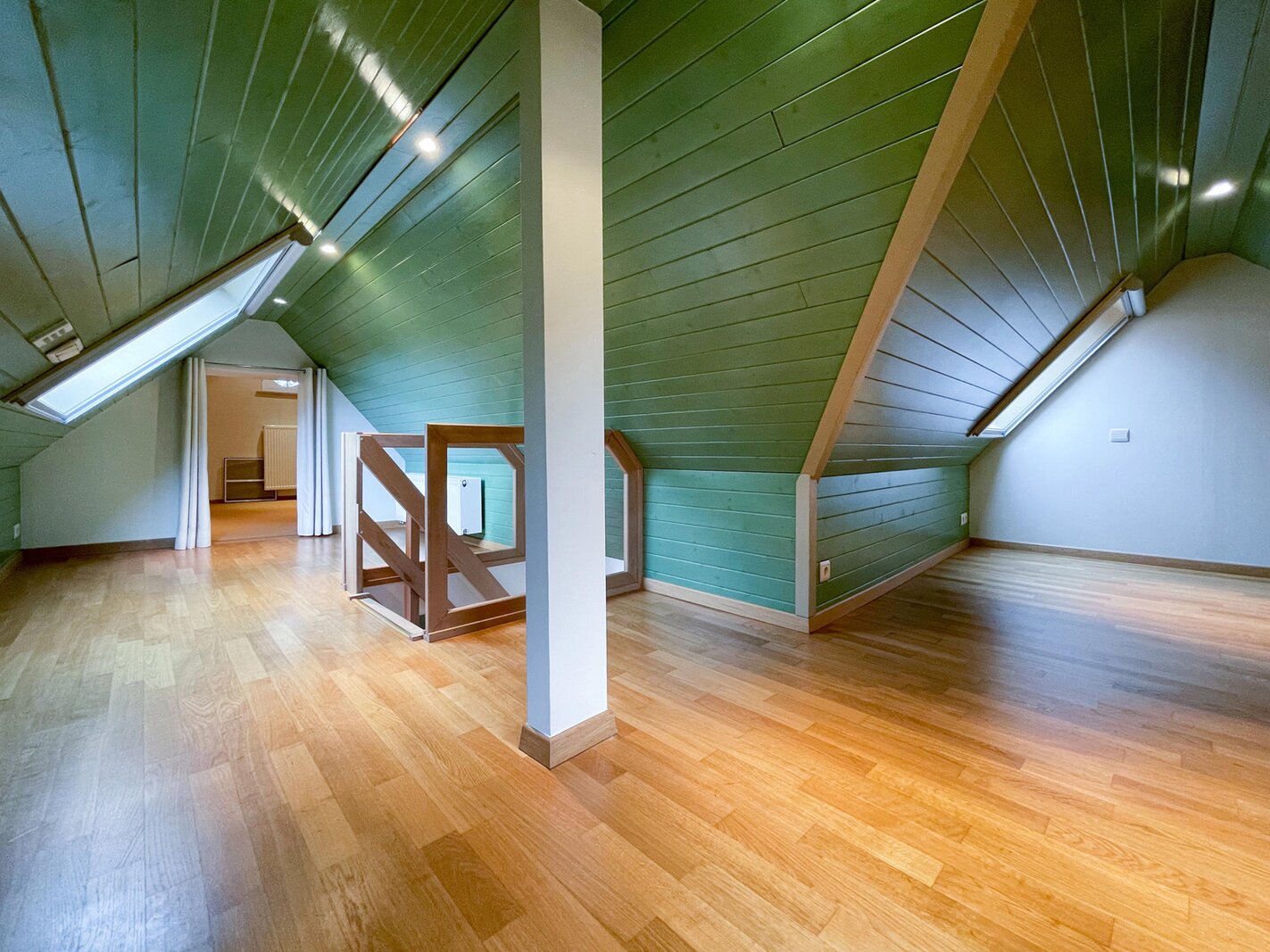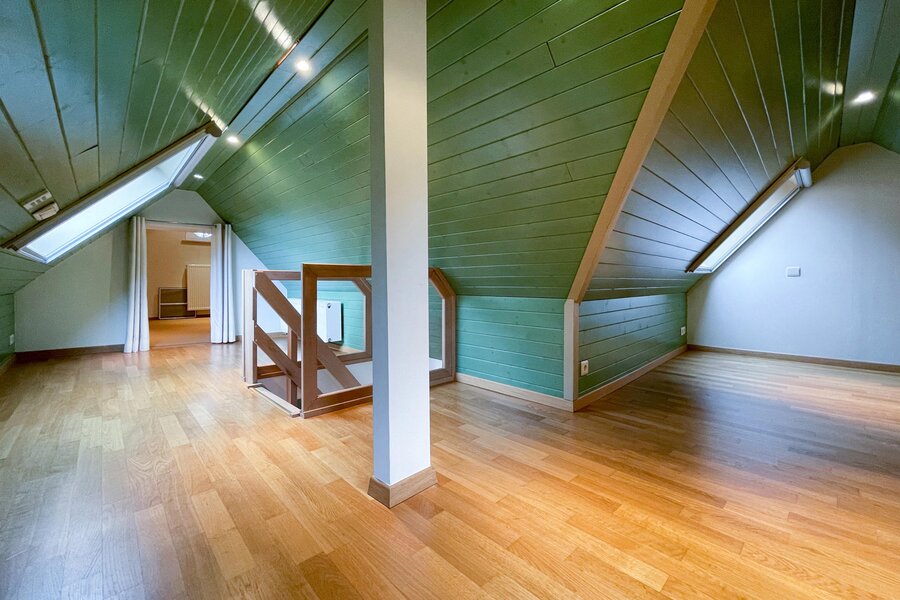 De 2e verdieping is ingericht als polyvalente ruimte waar zich momenteel 3 bijkomende slaaphoeken bevinden.