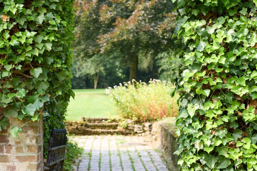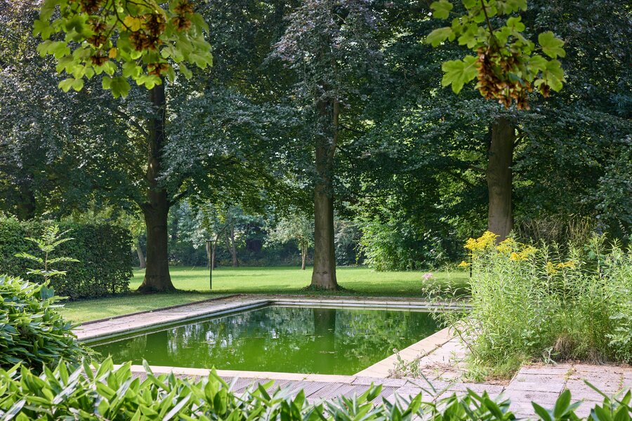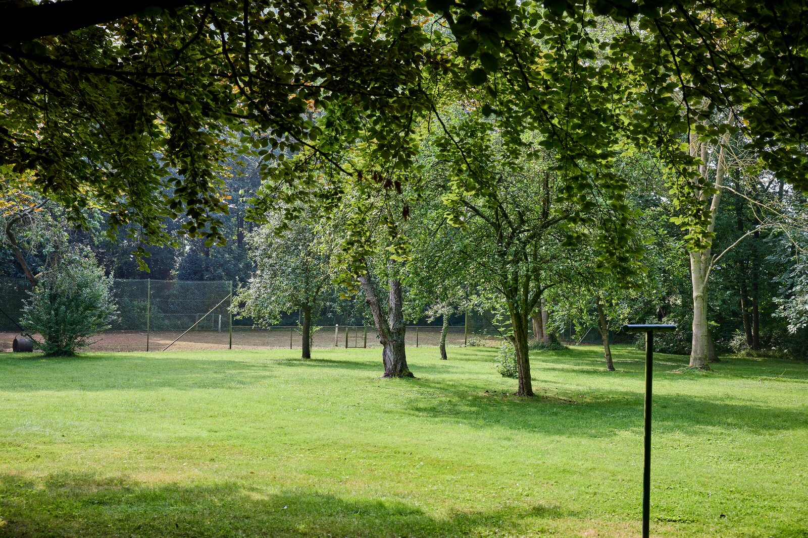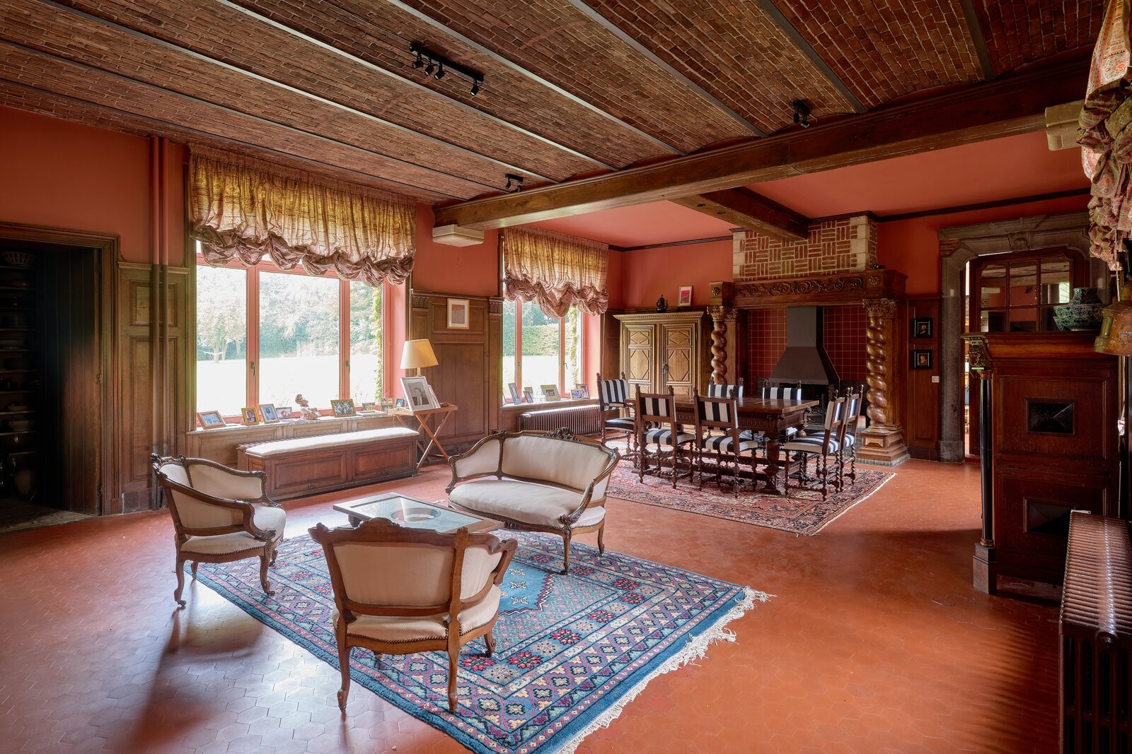 Het park rondom het kasteel is een ware oase van rust nabij Brussel. Het omvat een natuurlijke vijver, een zwembad, een tennisveld en een serre, en biedt een idyllische leefomgeving voor de toekomstige eigenaren.