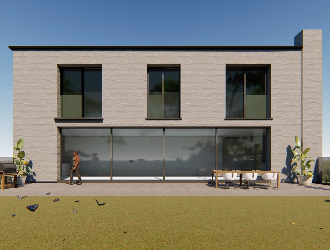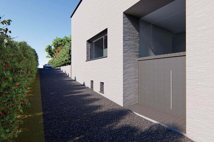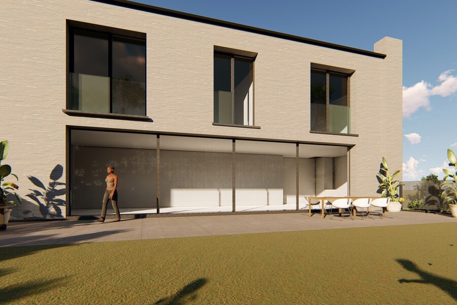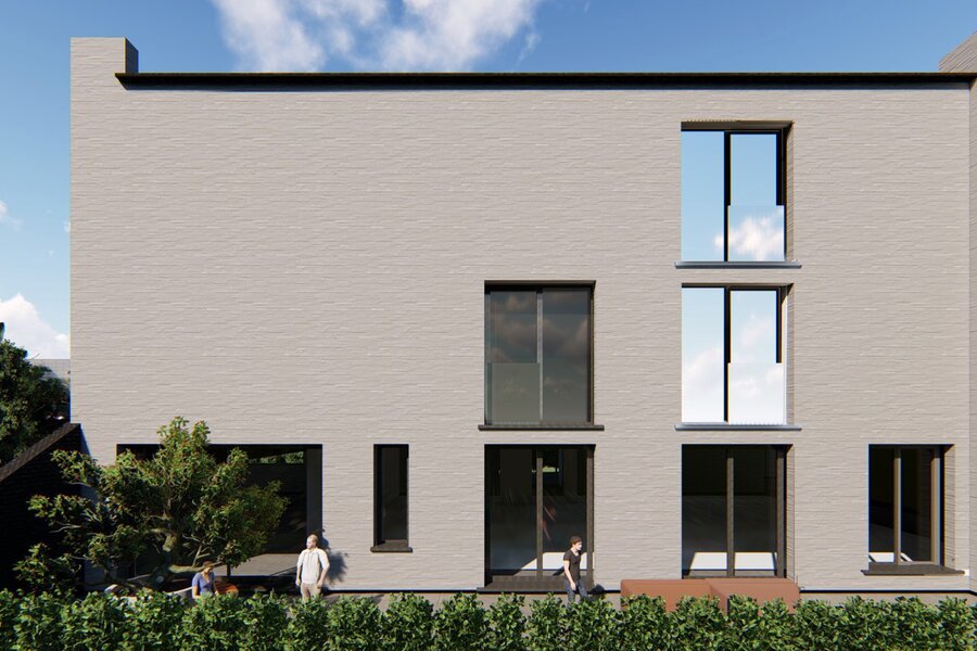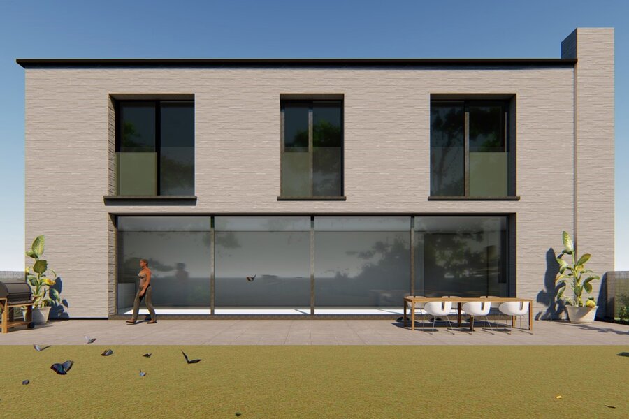 De ruwbouw omvat al het structurele werk, d.w.z. de muren, gevelbekleding, buitenschrijnwerk inclusief kozijnen en deuren, dak en isolatie.