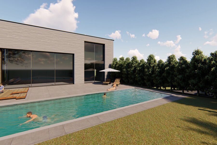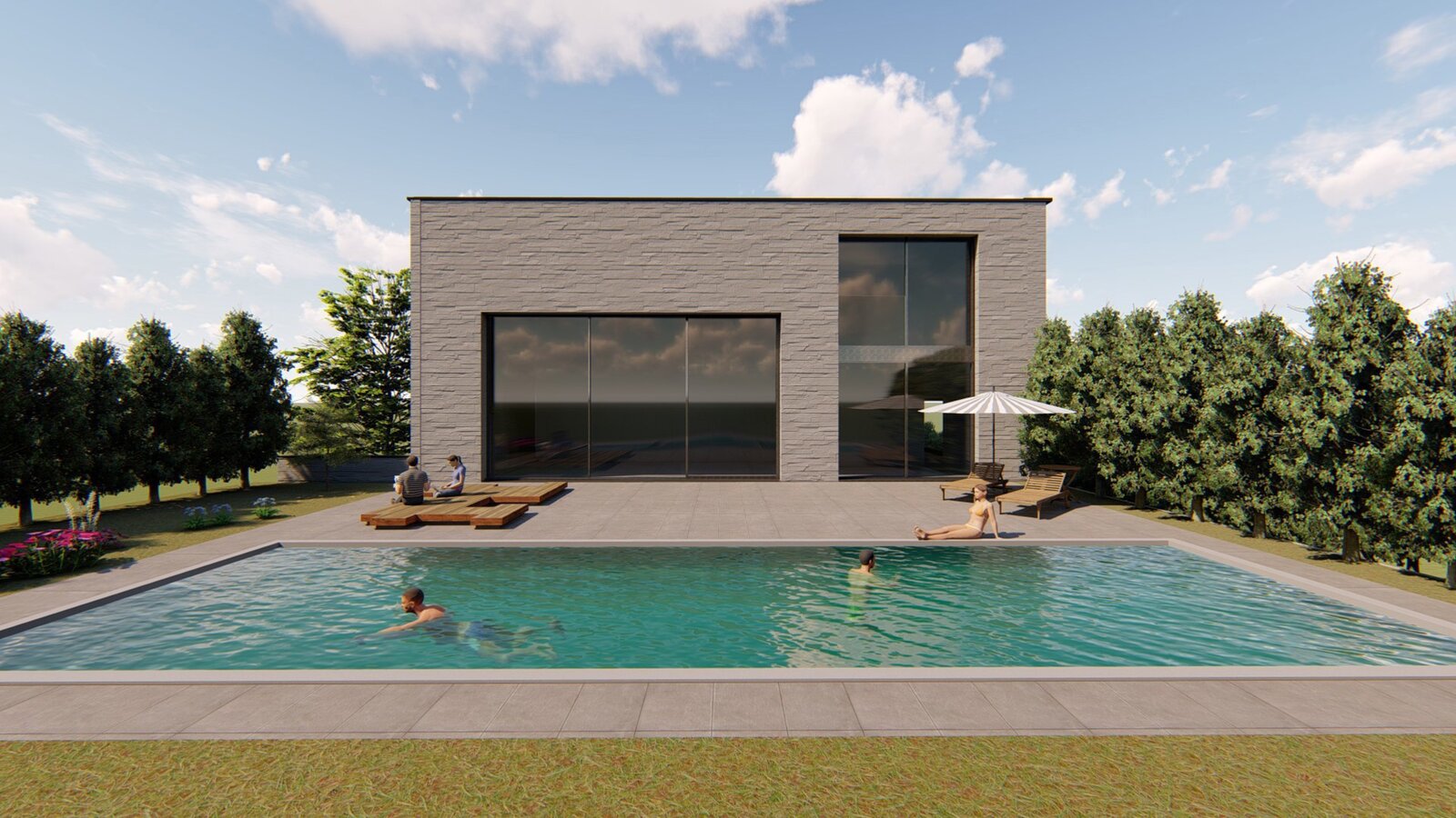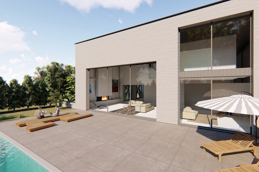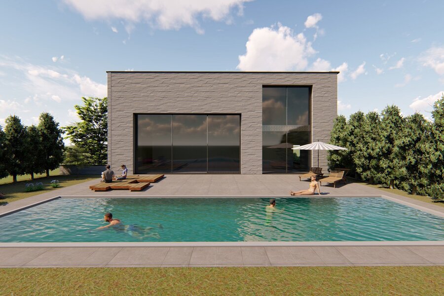 De ruwbouw omvat al het structurele werk, d.w.z. de muren, gevelbekleding, buitenschrijnwerk inclusief kozijnen en deuren, dak en isolatie.