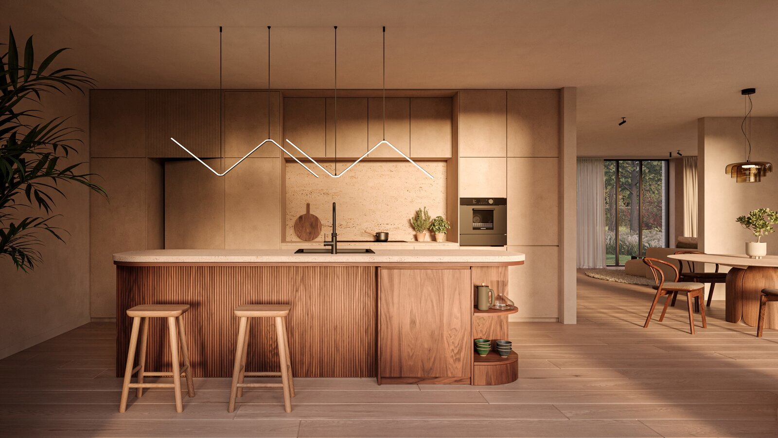 De ruime, lichtrijke leefruimtes bieden een aangename woonbeleving en sluiten naadloos aan op de westelijk georiënteerde tuin en het terras, waar u tot in de late uurtjes van de zon kunt genieten.