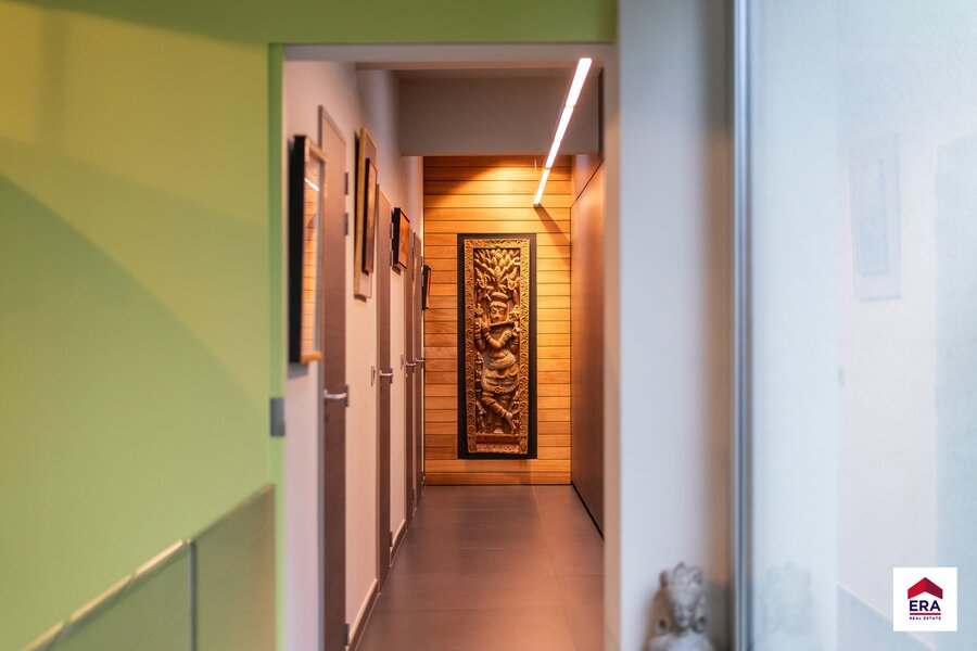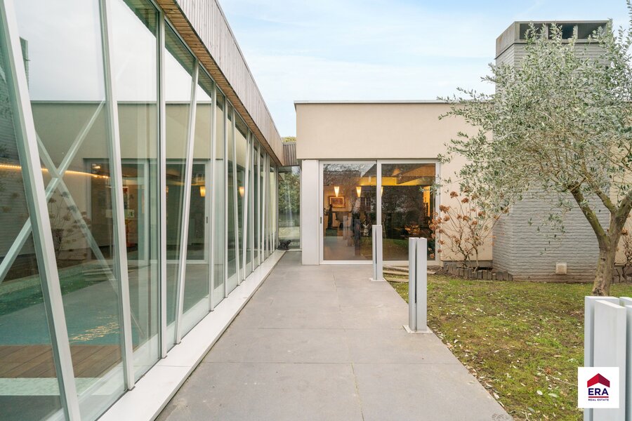 Deze luxevilla uit 1965 werd volledig vernieuwd met hoogwaardige materialen en biedt ultiem wooncomfort. Volledige beveiliging dankzij een alarminstallatie en automatische poort zorgt voor maximale privacy en veiligheid. Het binnenzwembad en de lift maken het wonen hier bijzonder aangenaam. Nieuwe gasverwarming en zonnepanelen (2024) garanderen energiezuinig en duurzaam wonen.